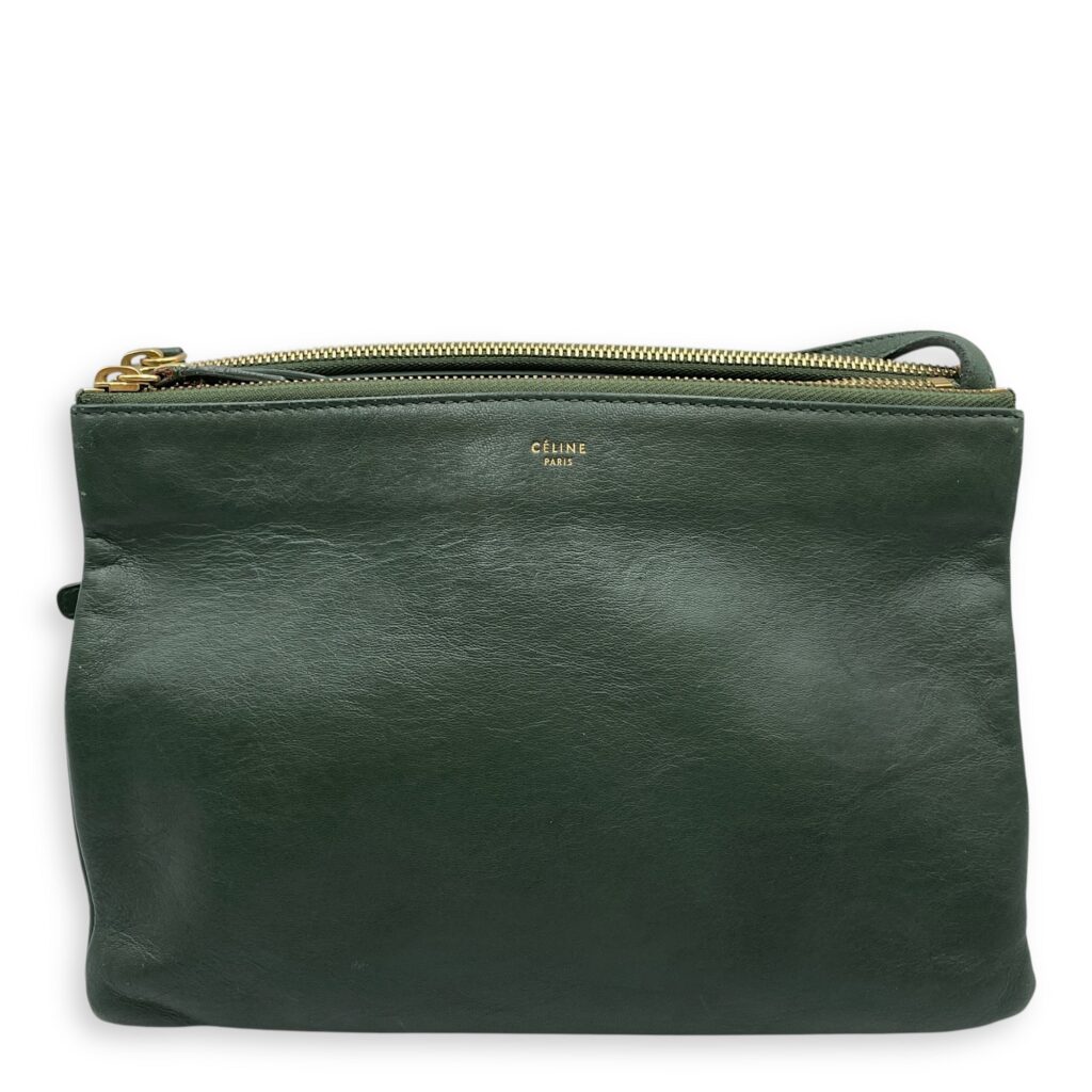Trio Green Crossbody Bag in Calfskin, Gold hardware