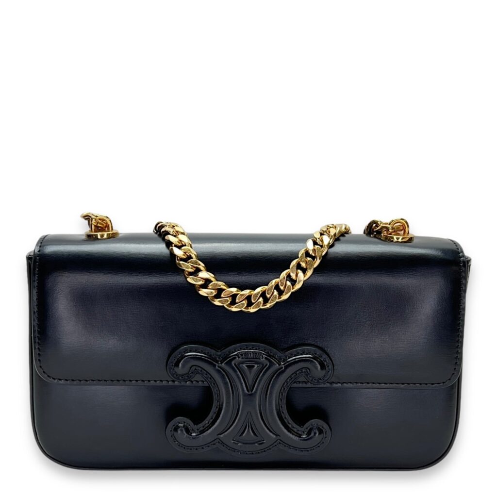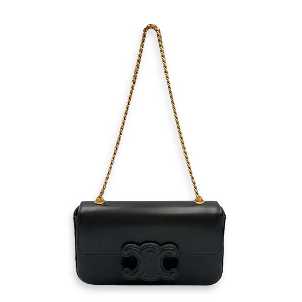 Triomphe Claude Black Shoulder Bag in Calfskin, Gold hardware