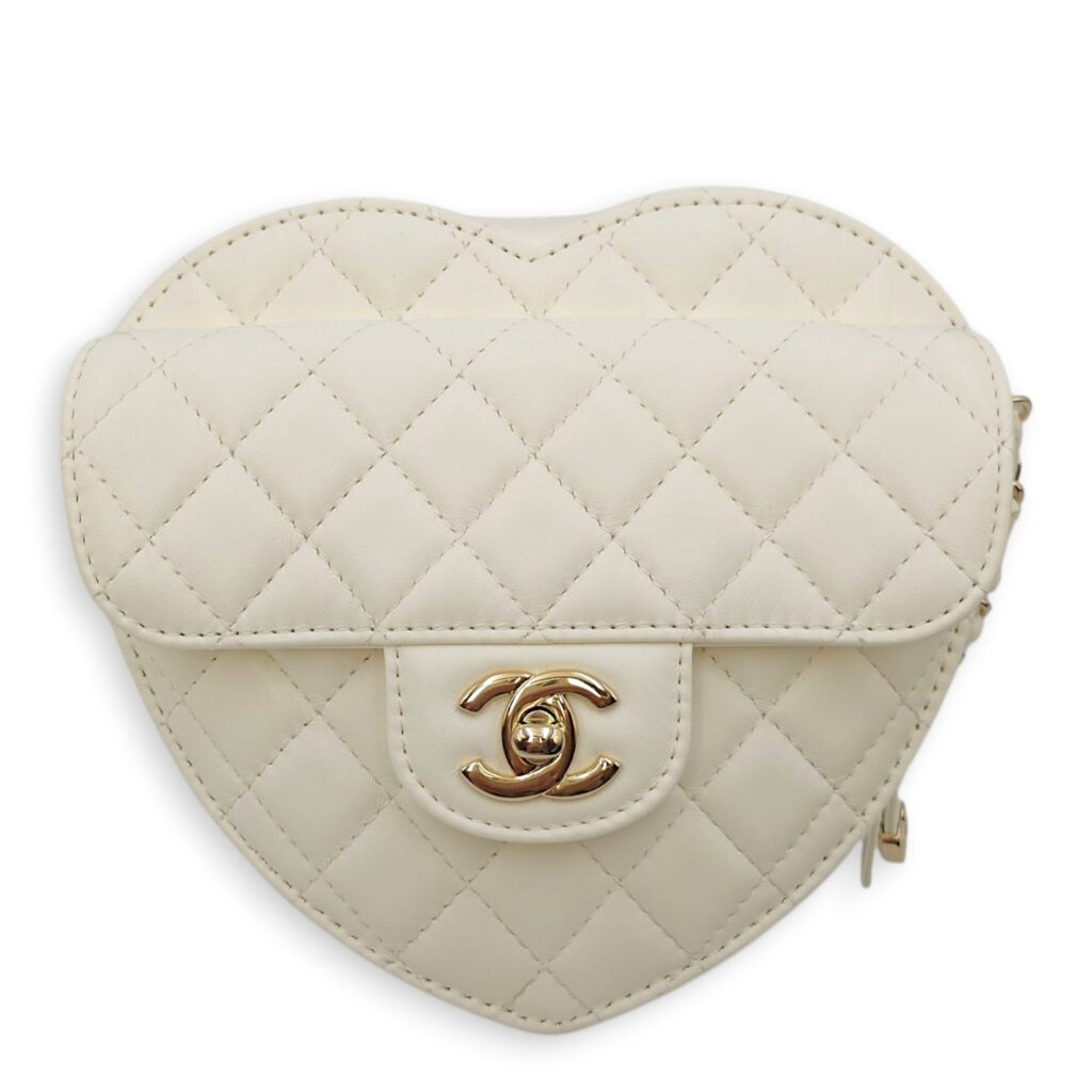 CC White Heart Bag in Lambskin, Champagne hardware