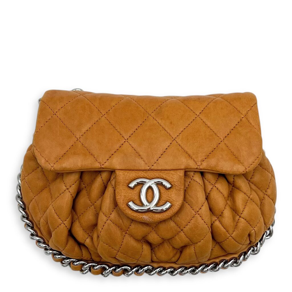 Chain Around Shoulder Bag Brown in Calfskin, Silver hardware