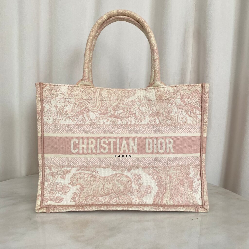 Christian Dior Bicolor Printed Embroidered Flower Tote Bag