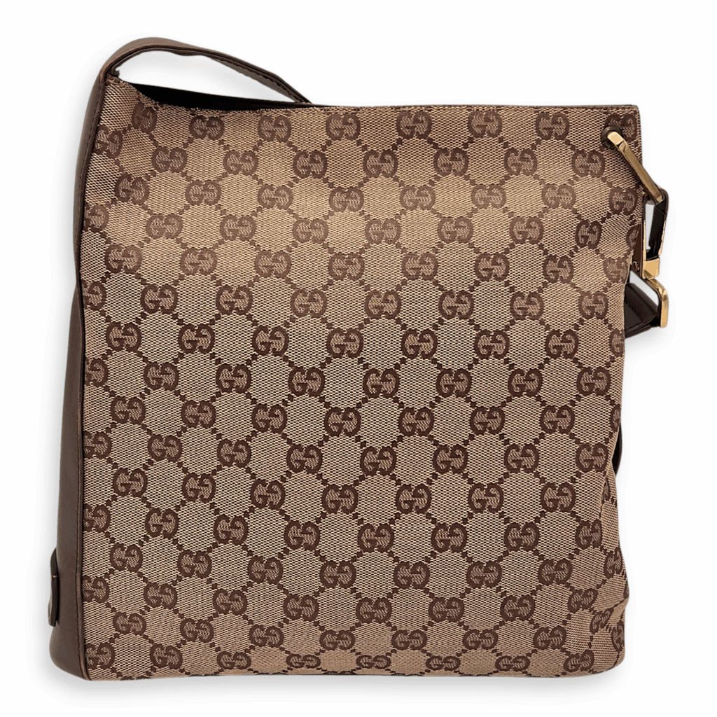 GG Shoulder Bag Brown in Canvas, Gold hardware