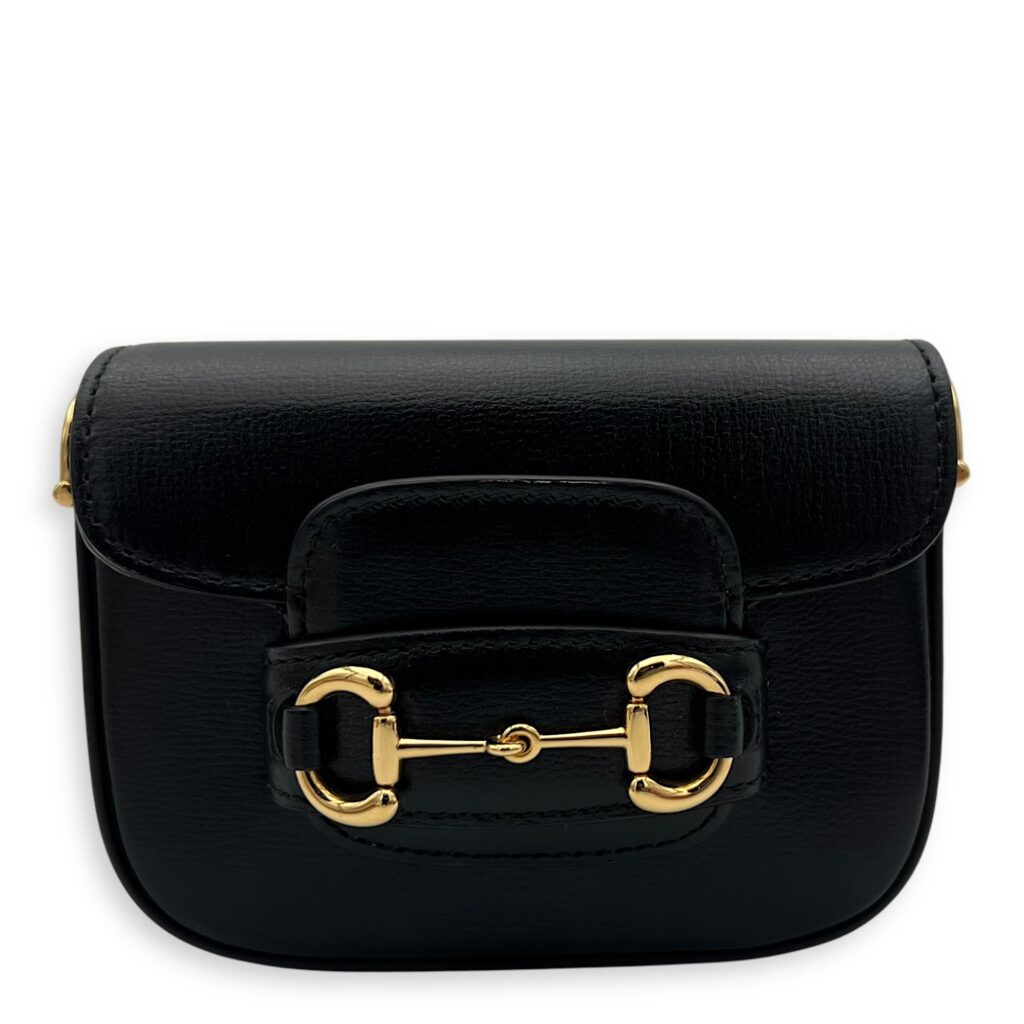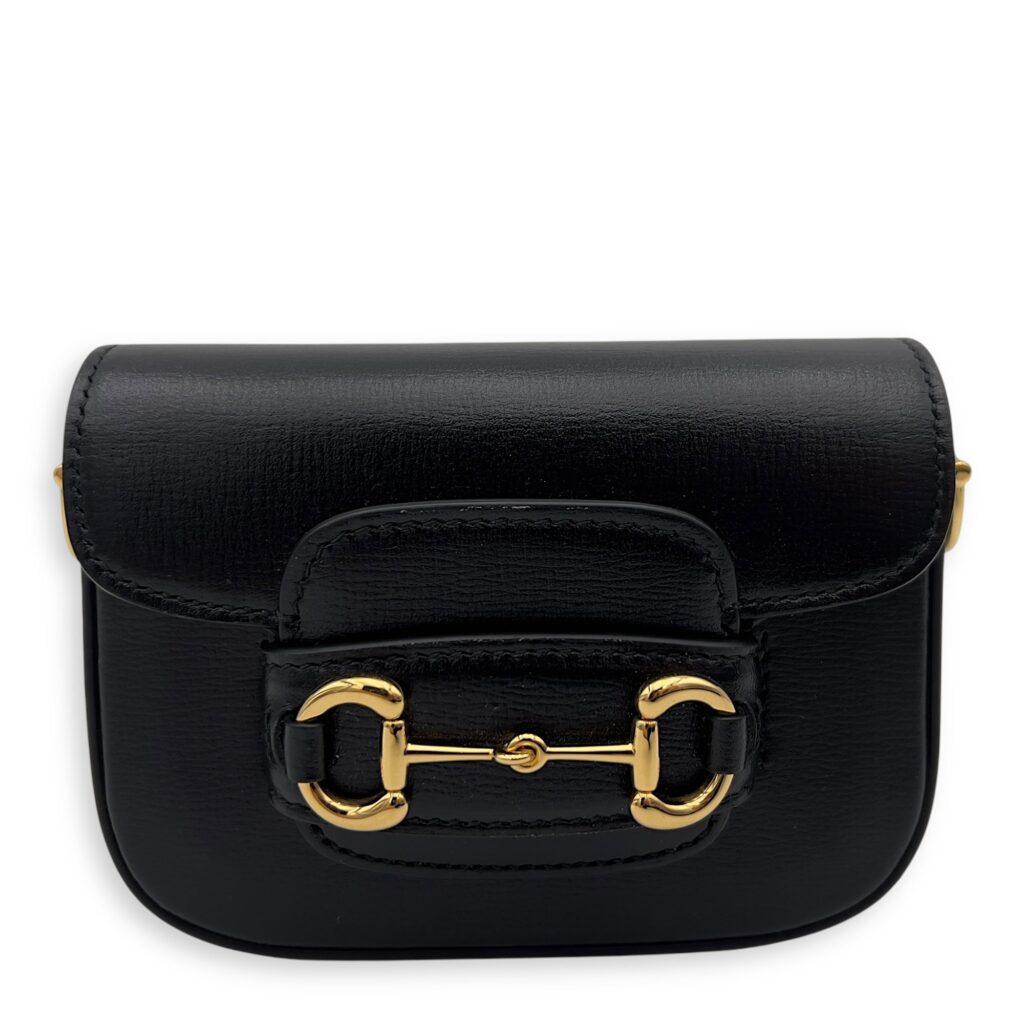 Horsebit 1955 Black Wallet On Chain in Calfskin, Gold hardware