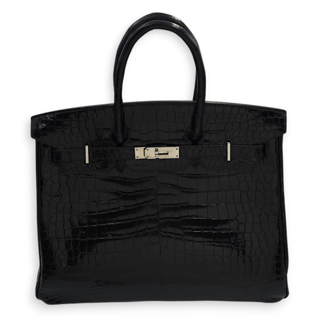 Birkin 35 Black in Shiny Porosus, Palladium hardware