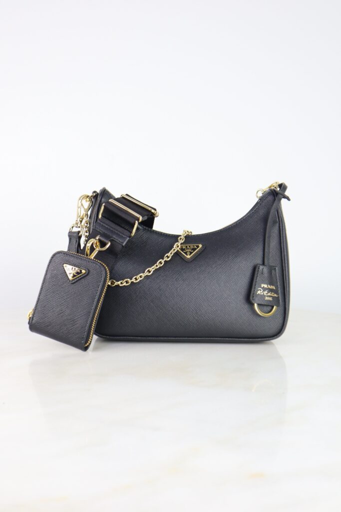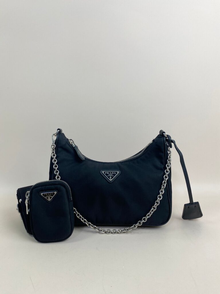 Prada Black Re-Edition 2005 Crossbody Bag with Chain