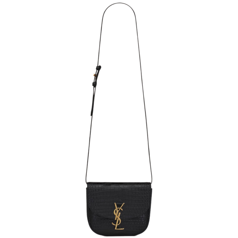 Kate Crossbody Bag Black in Crocodile Embossed Calfskin, Silver hardware