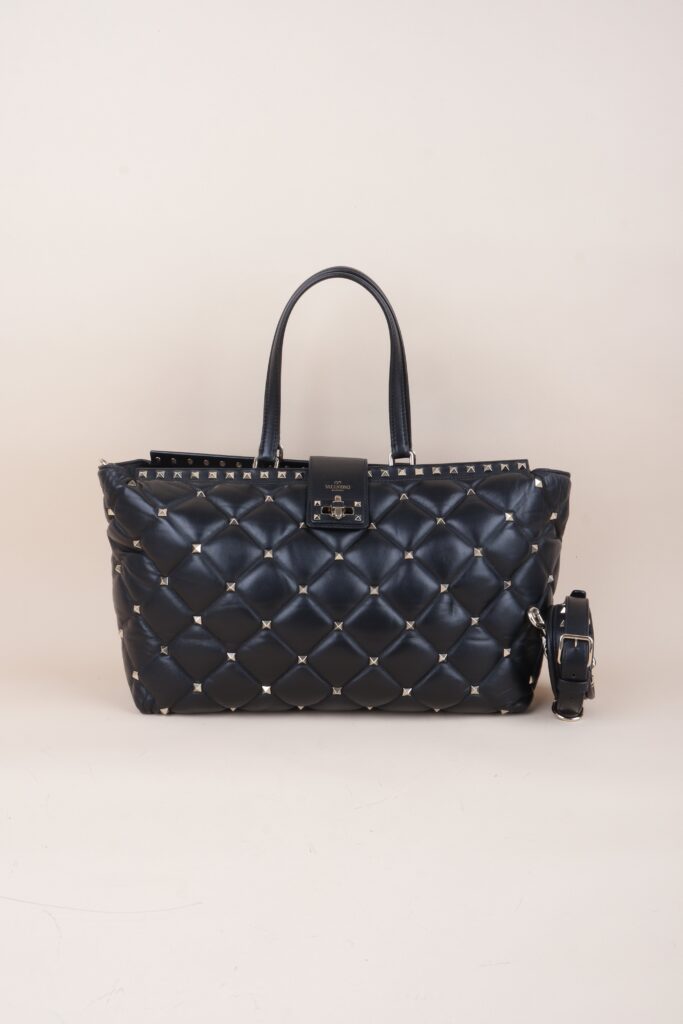 Valentino Black Medium Grainy Studded Shoulder Tote Bag