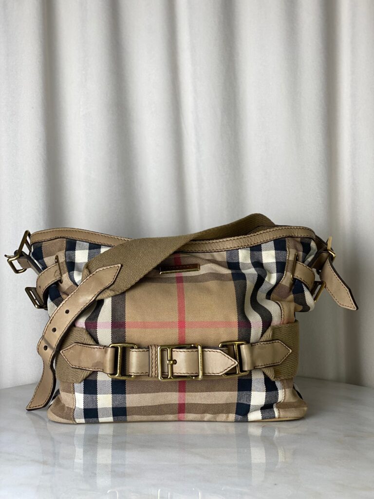 It comes with a small purse inside and has a pretty handle made of braided leather and metal. You can carry it on your shoulder or across your body because it has a long strap that you can adjust.