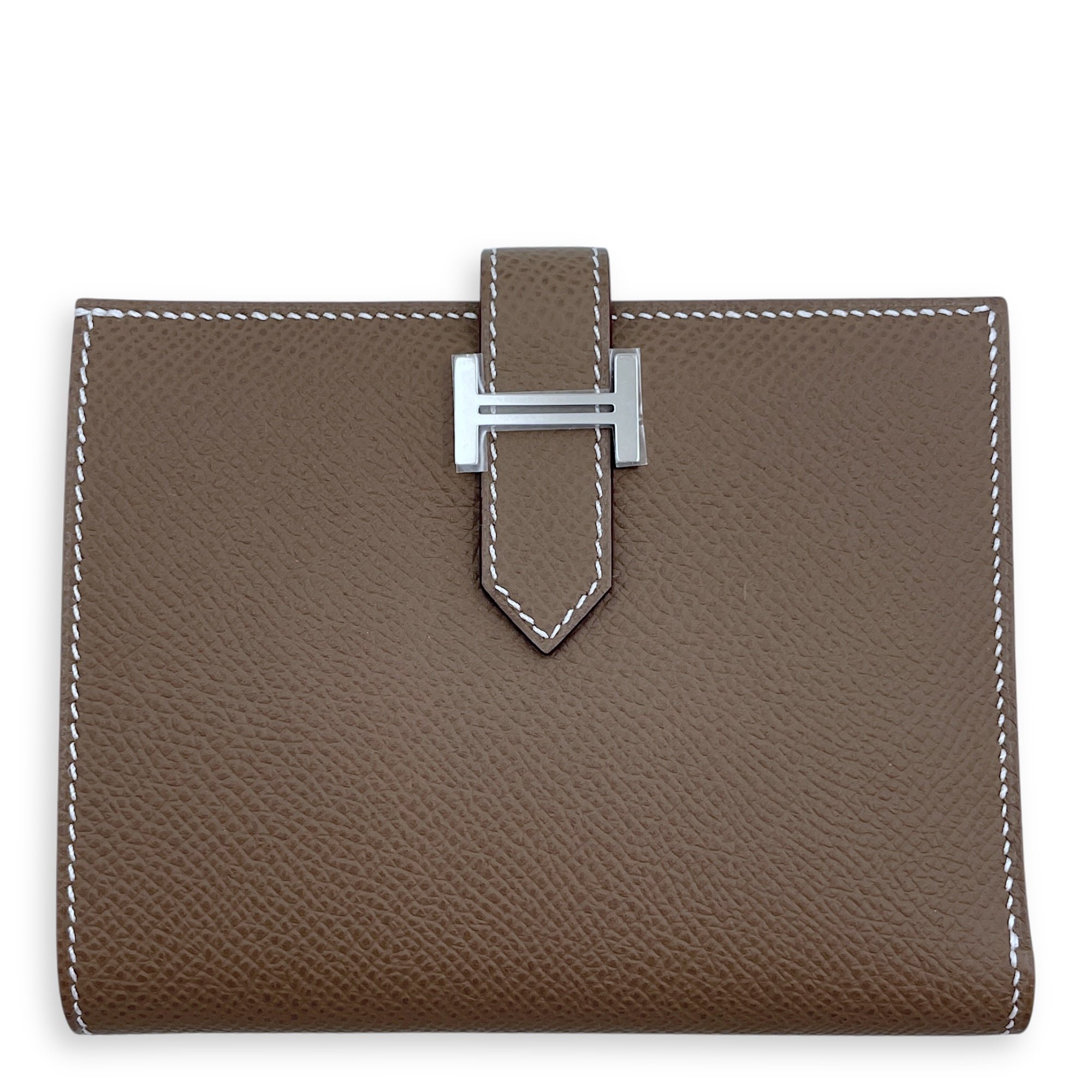 Bearn Compact Etoupe Wallet in Epsom, Palladium hardware