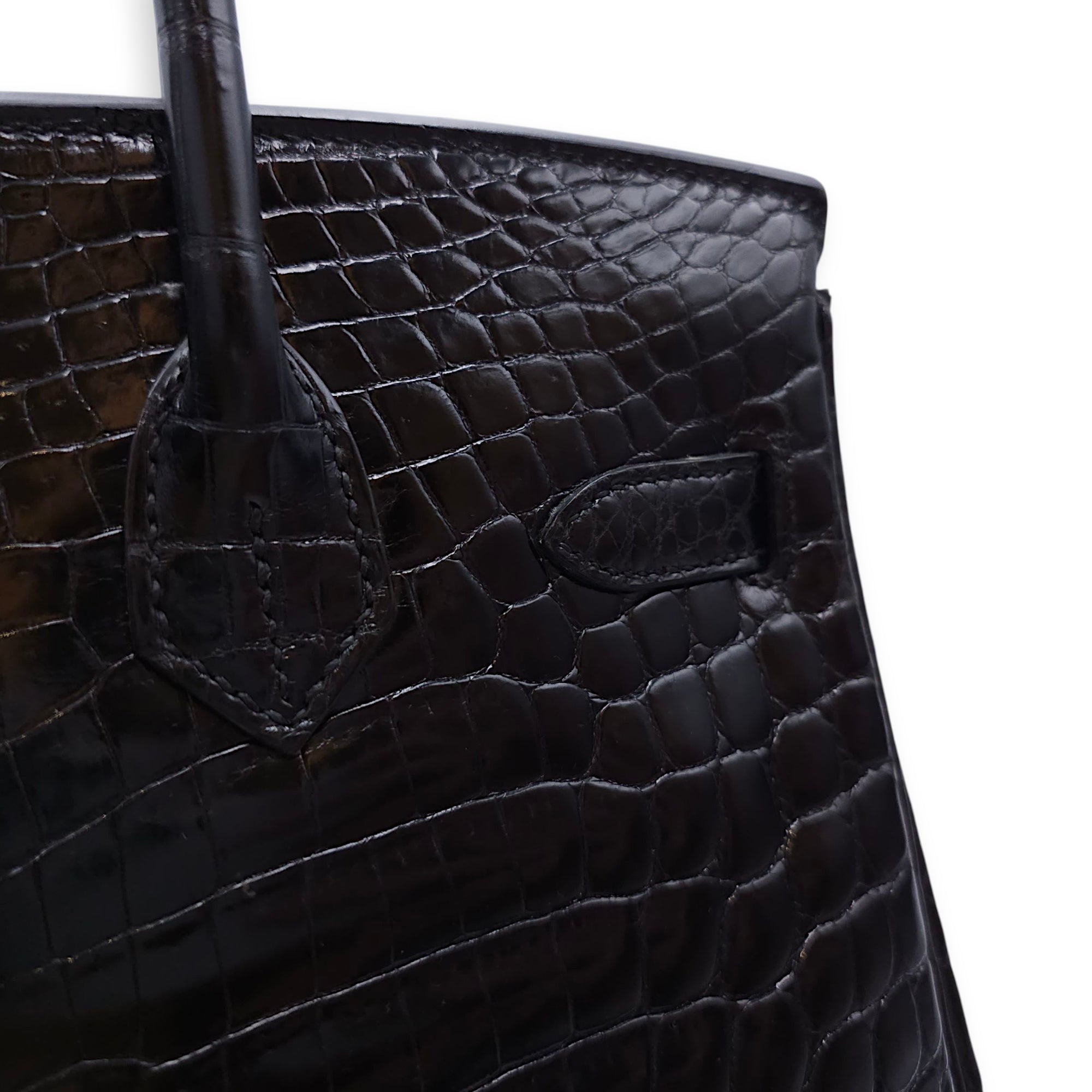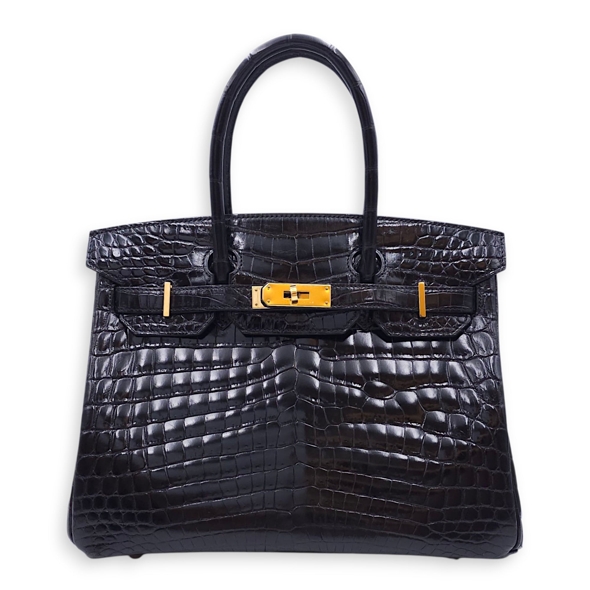 Birkin 30 Black in Shiny Niloticus, Gold hardware
