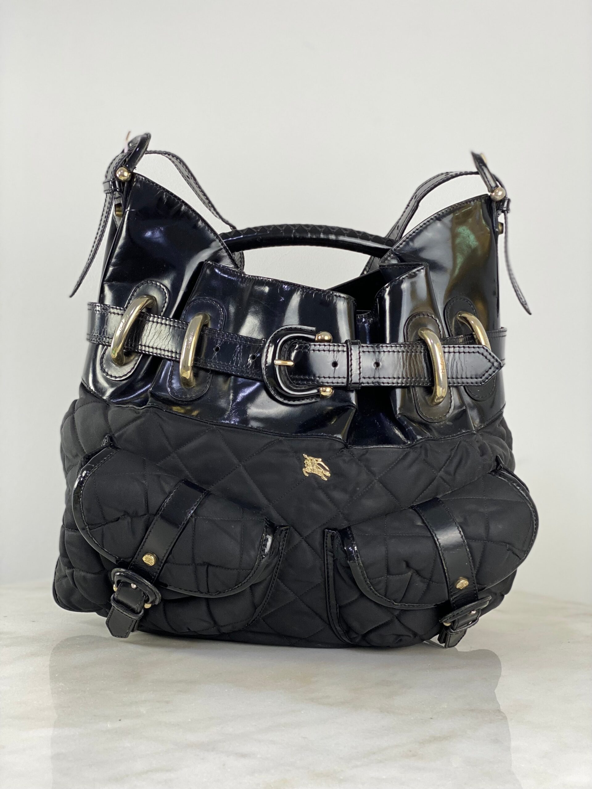 Burberry Black Nylon Vernis Bromley Ad Hobo Bag
