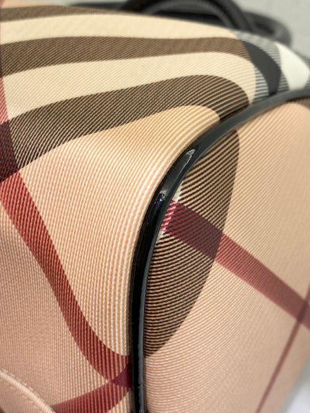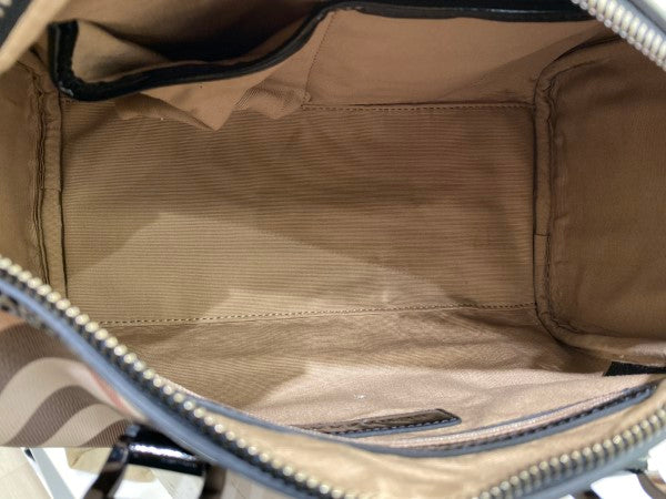 • Material: Haymarket Check Canvas with Black Patent Leather Trim