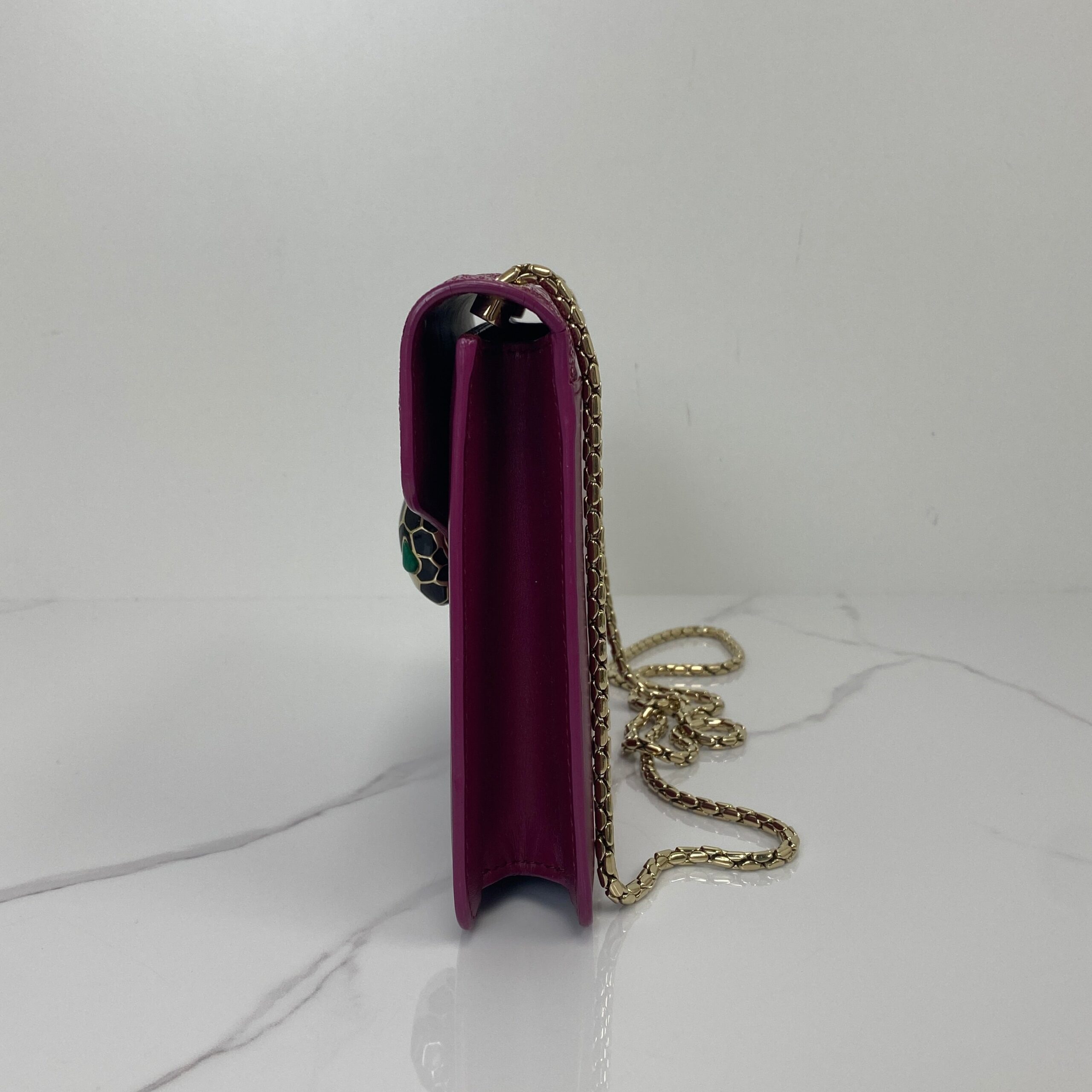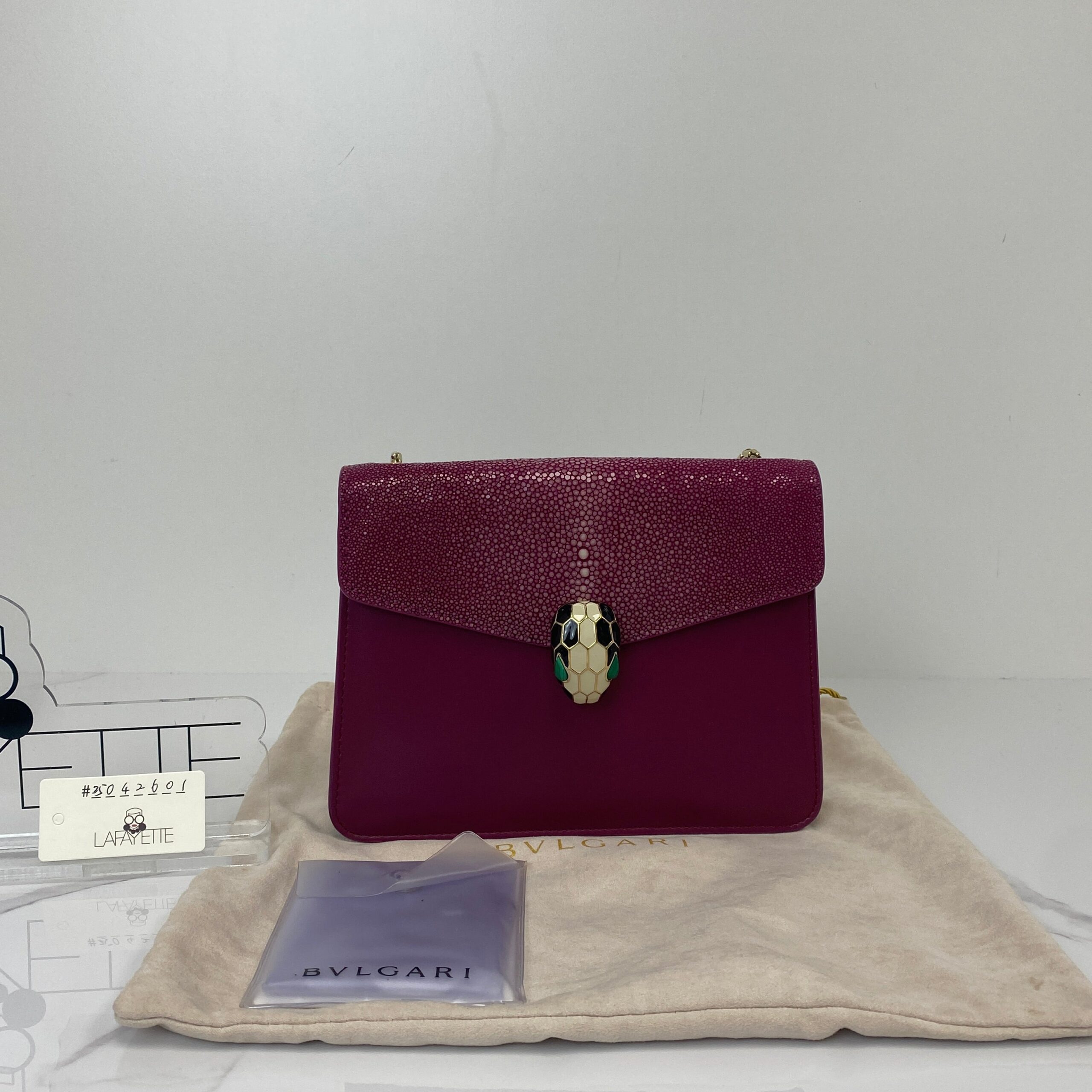 Wrapped in dark pink stingray leather and crowned with the iconic Serpenti head, this Bvlgari bag is pure seduction in motion—crafted for the bold and the unforgettable.