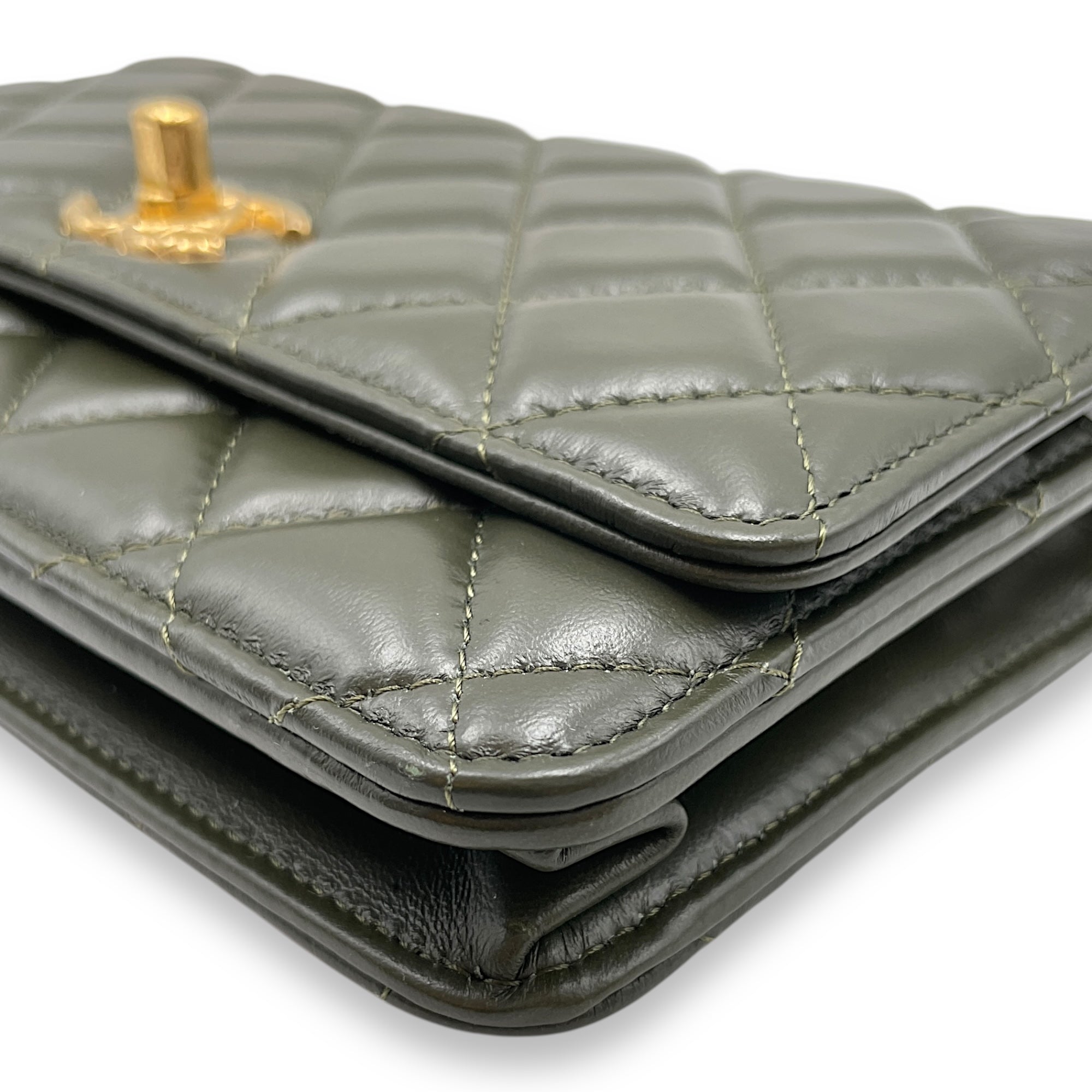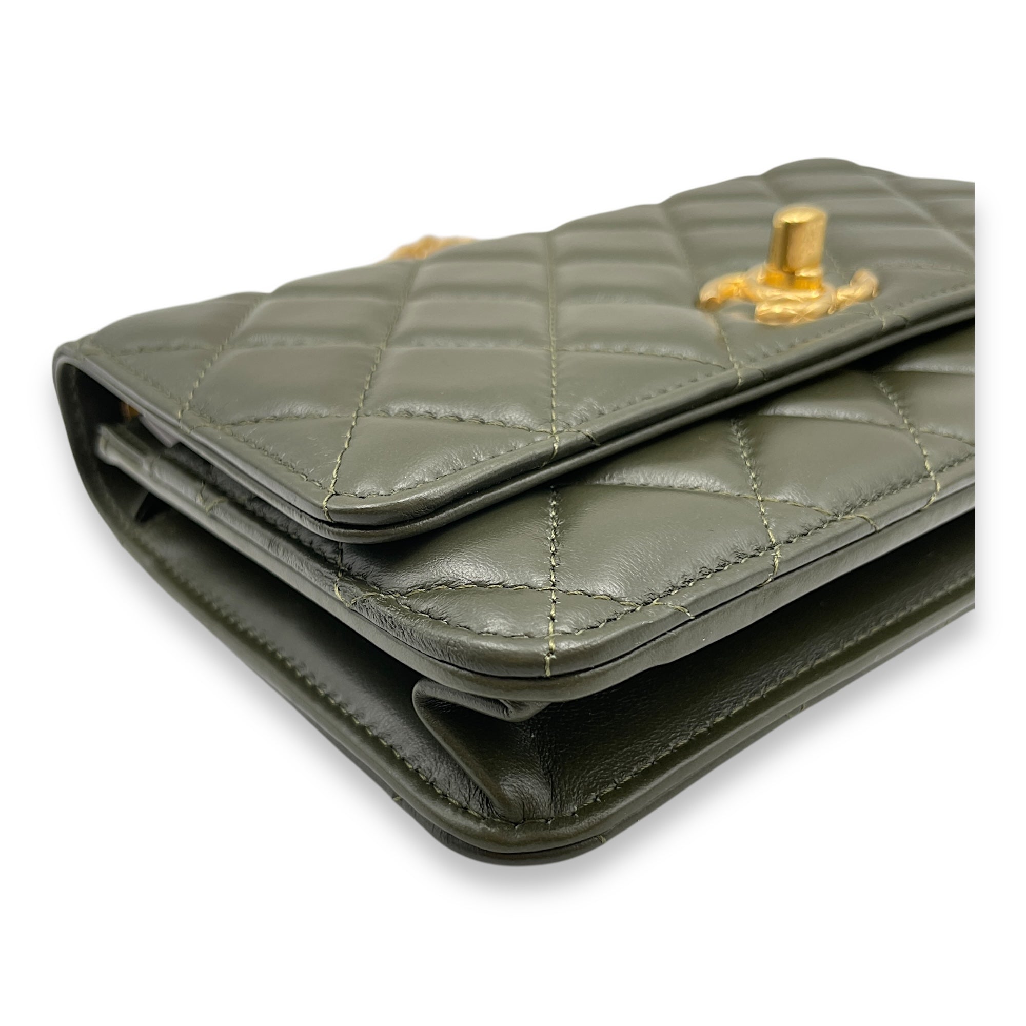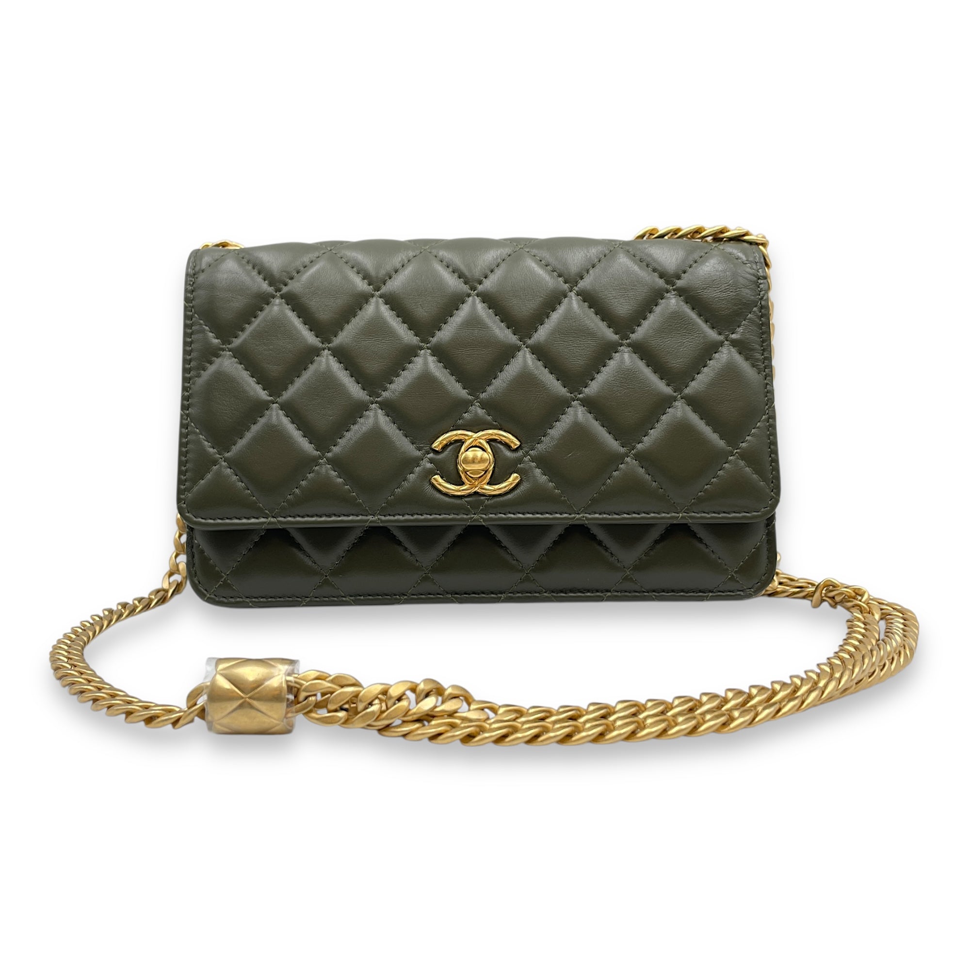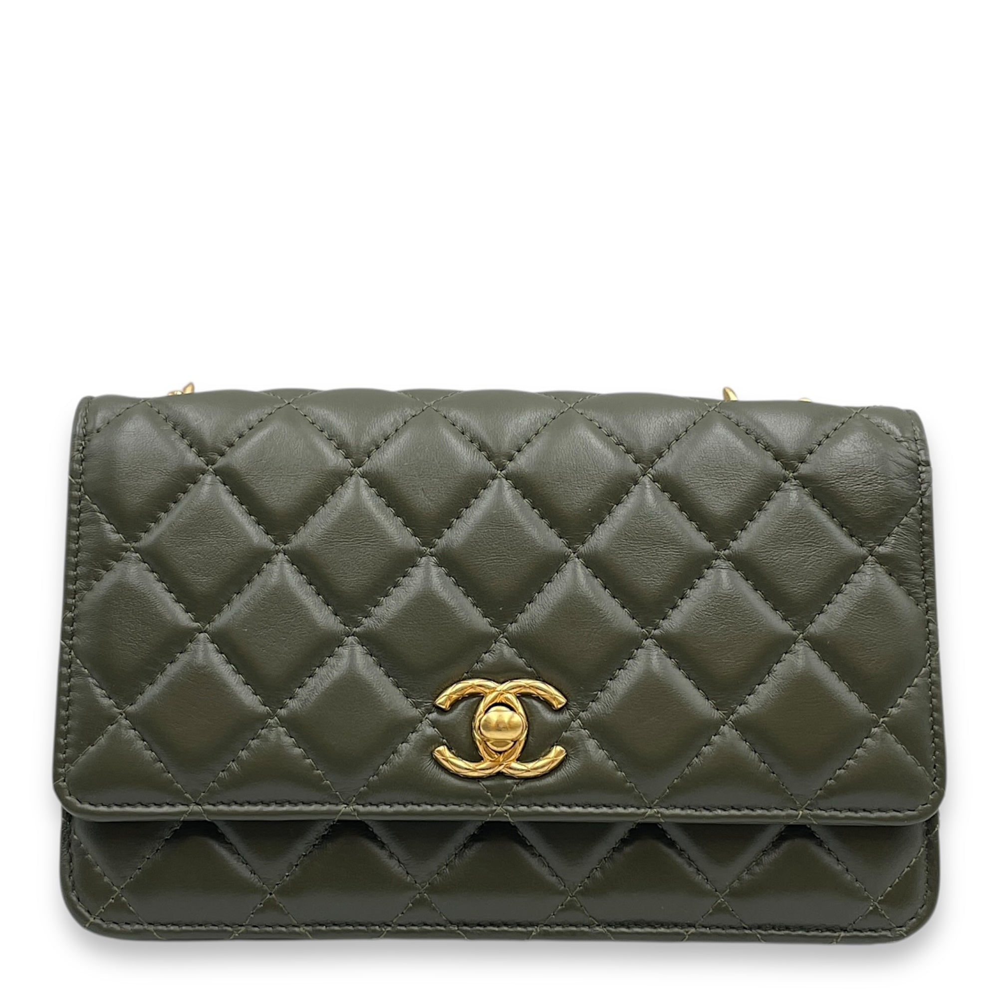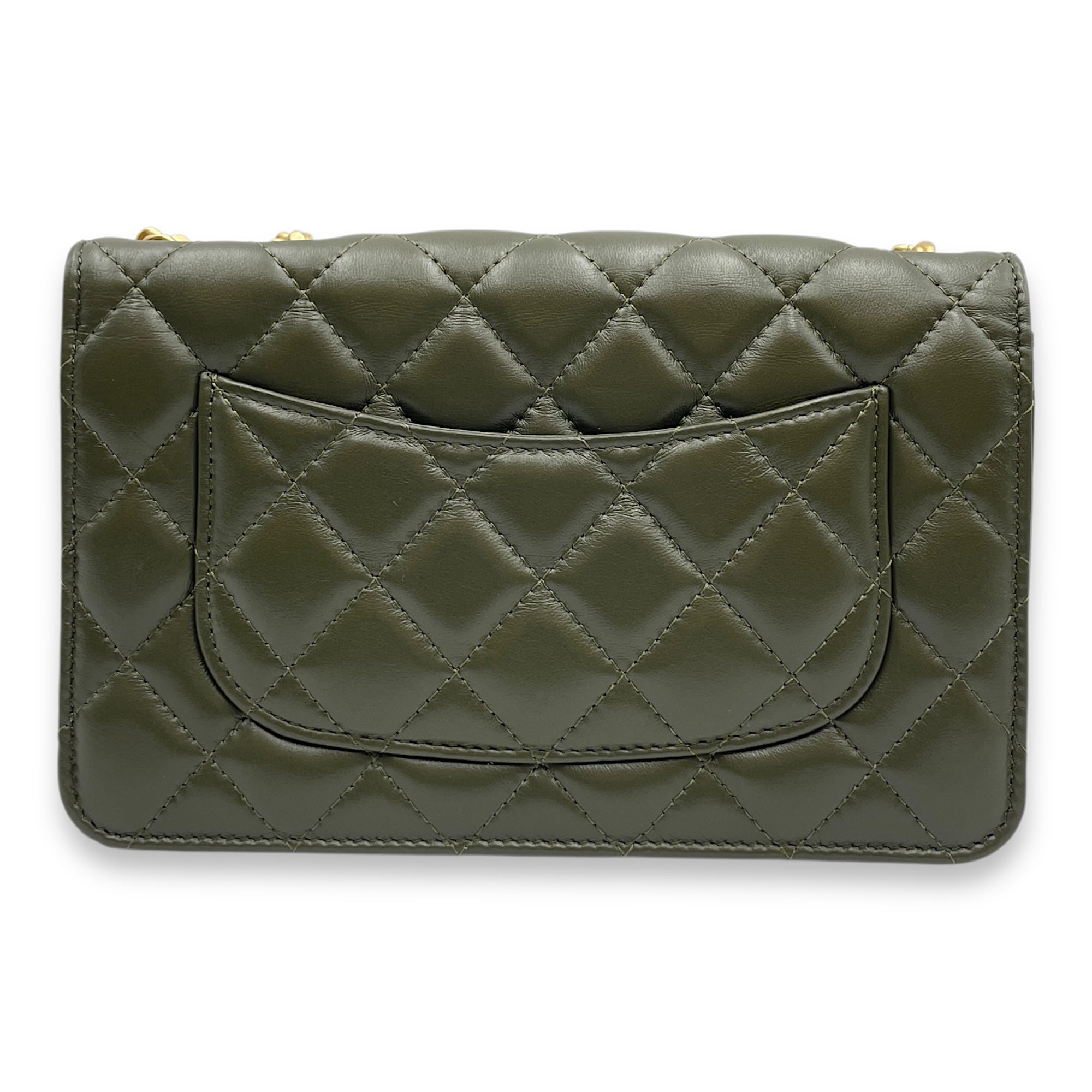 CC Quilted Olive Green Wallet on Chain in Lambskin, Gold hardware