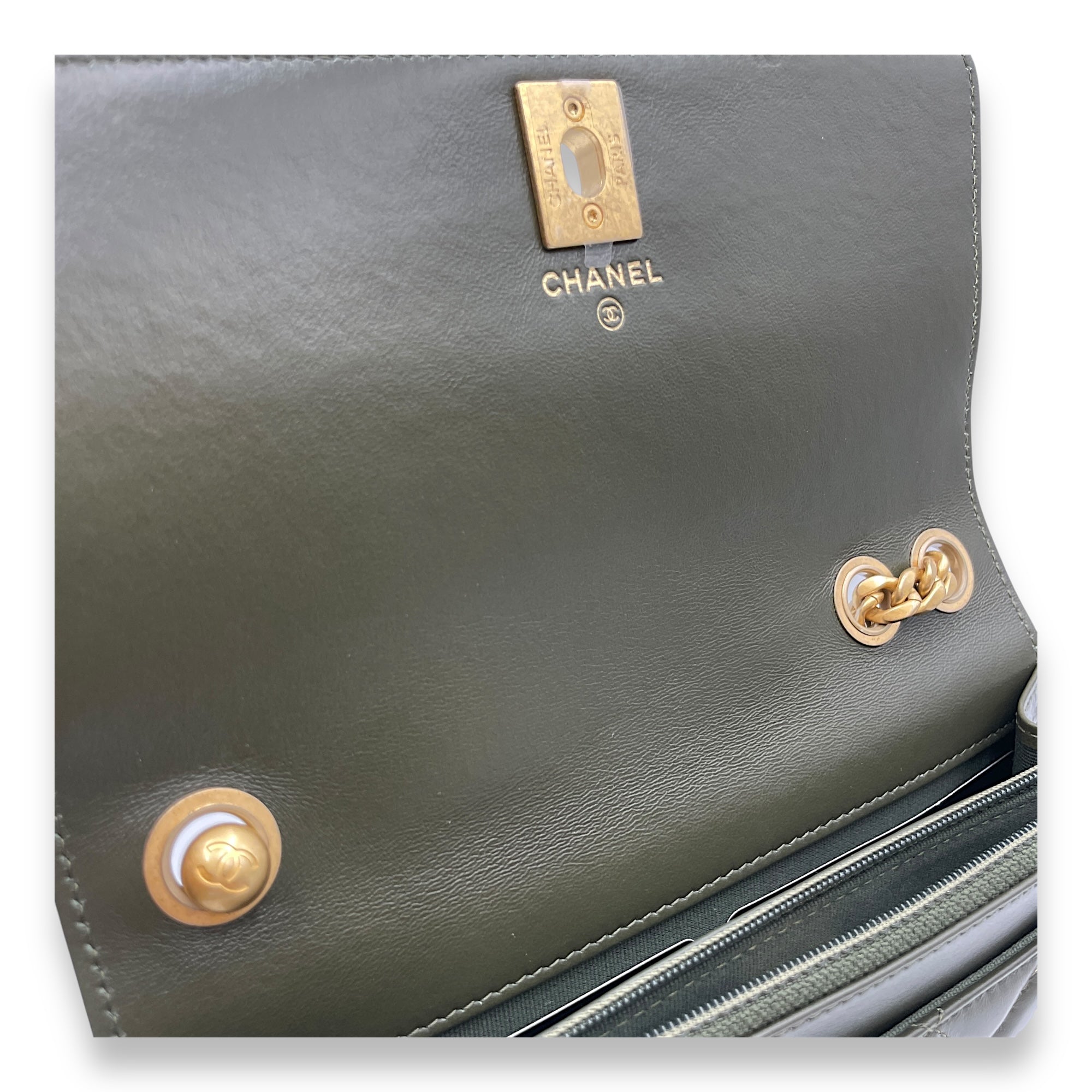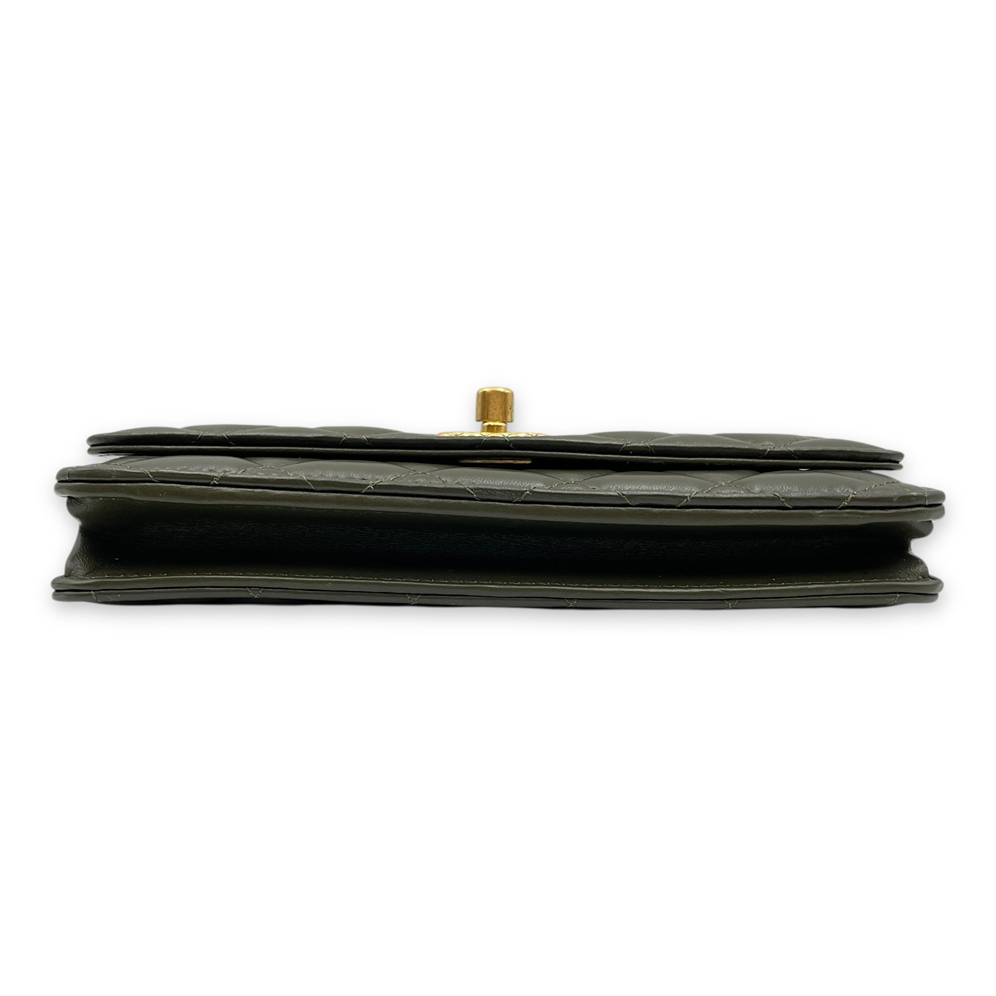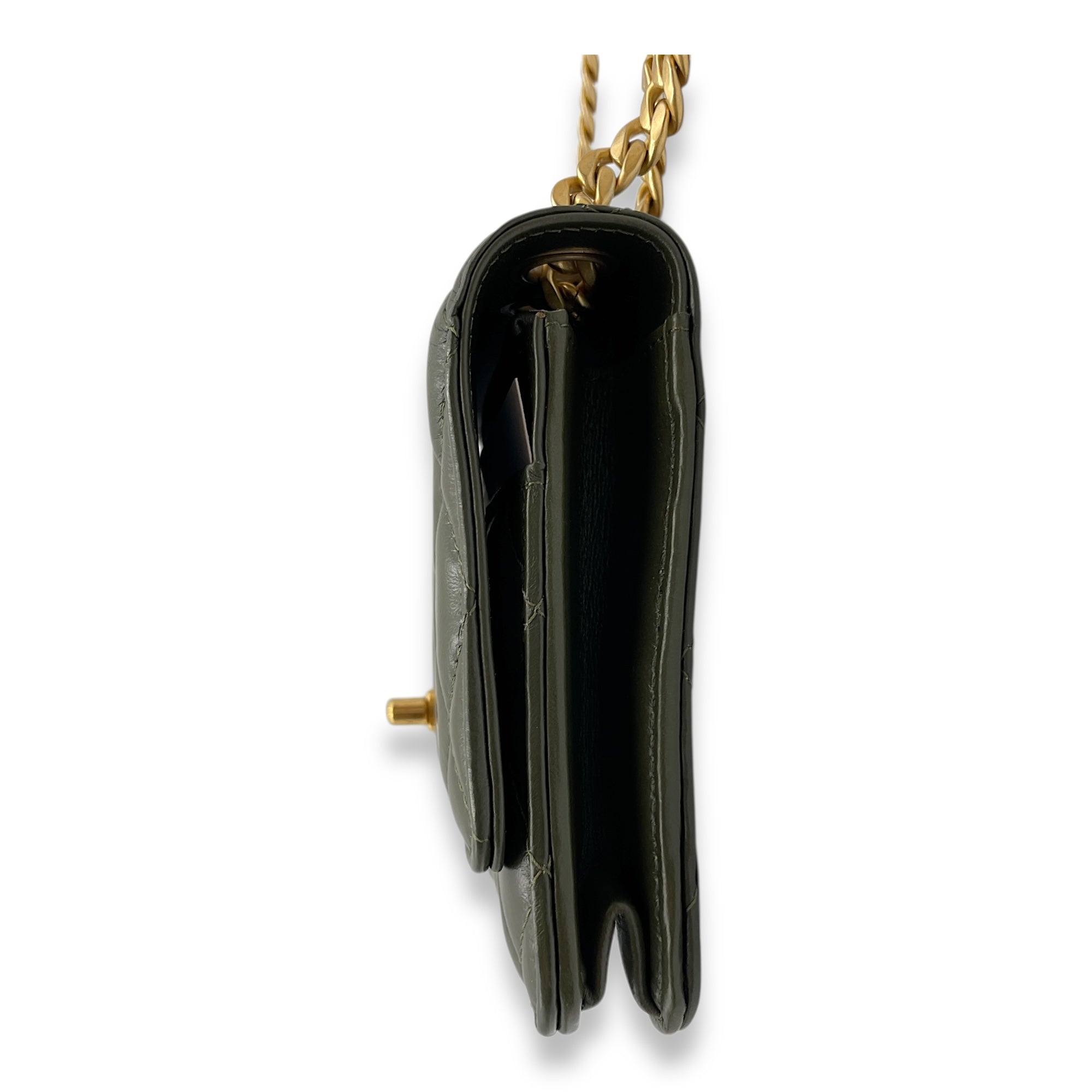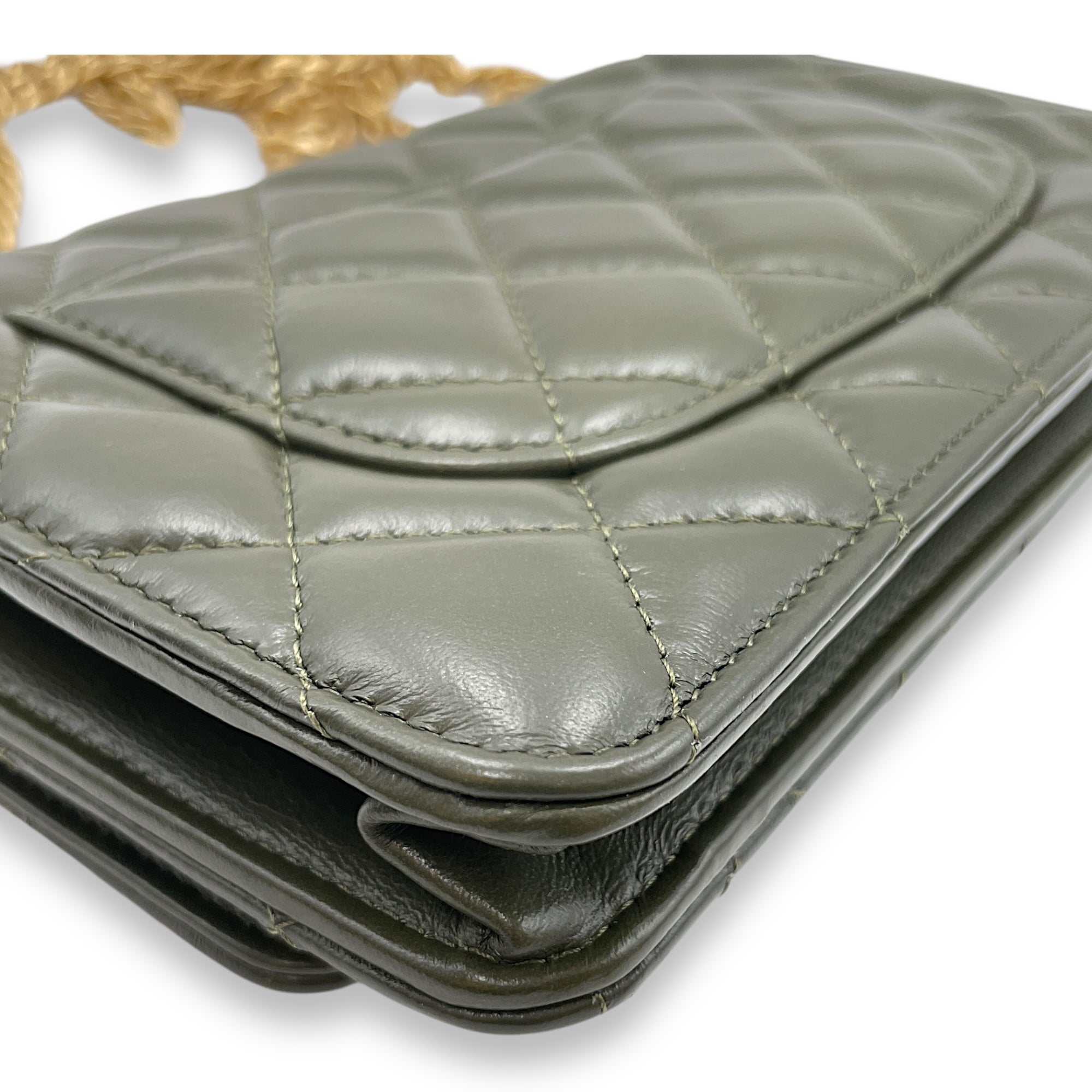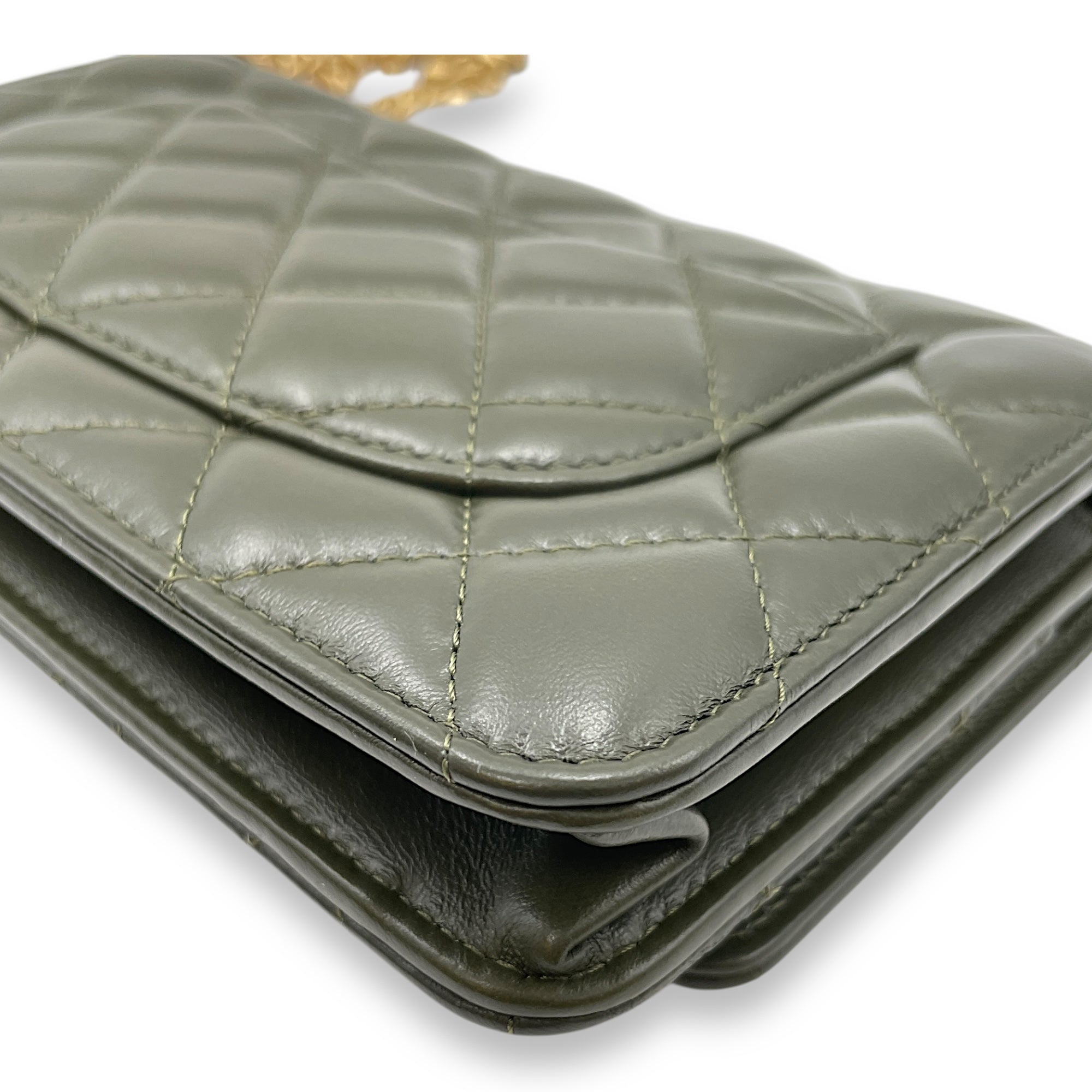 CC Quilted Olive Green Wallet on Chain in Lambskin, Gold hardware