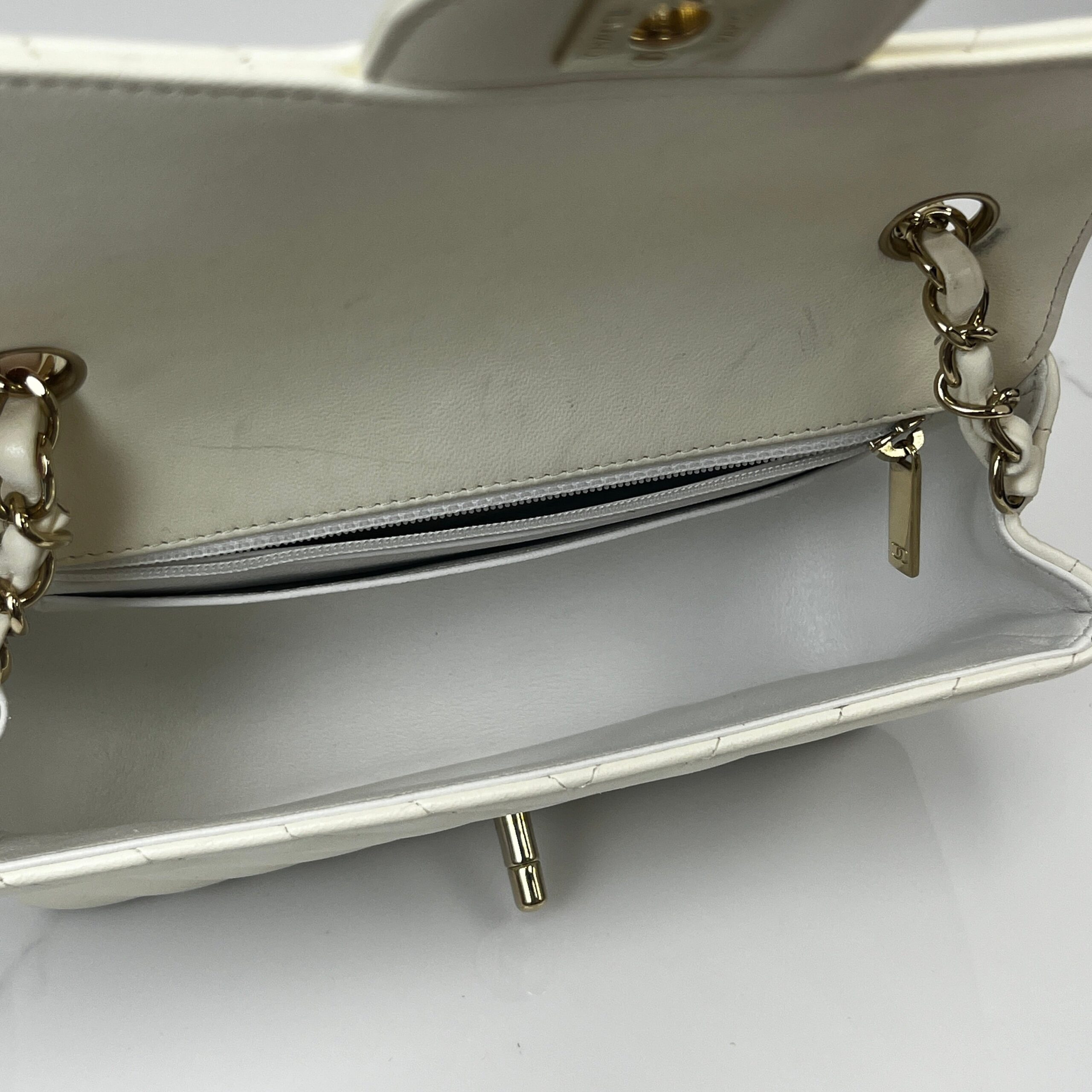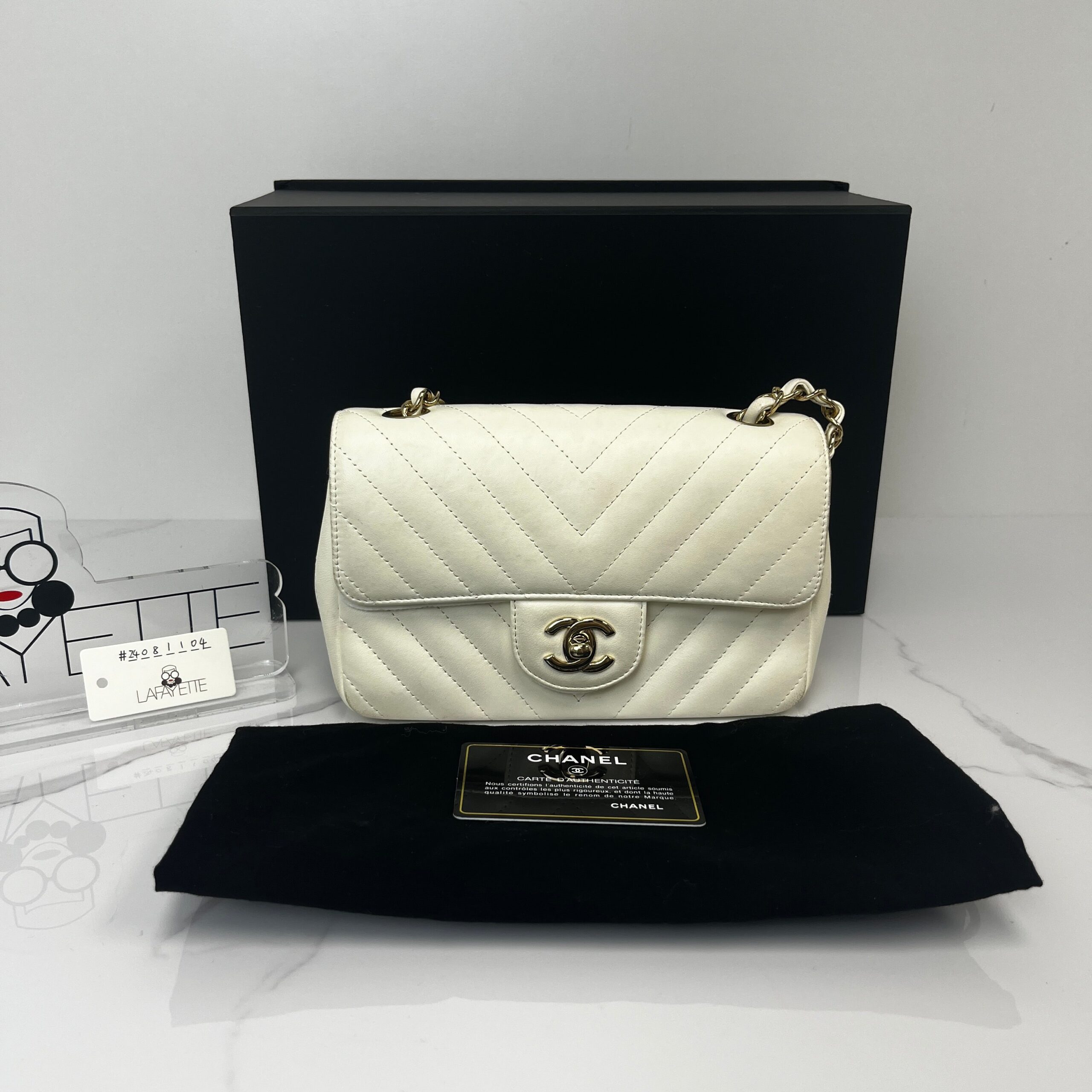 Elevate your look with the Chanel Chevron Mini Rectangle Chain Bag in luxurious lambskin. Its compact size and elegant design make it the perfect accessory for both day and night. Whether worn crossbody or as a chic clutch, this versatile bag adds a touch of classic Chanel sophistication to any outfit.