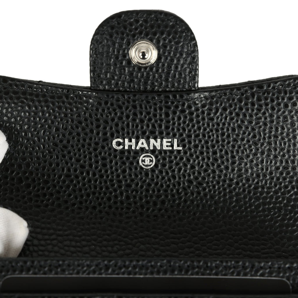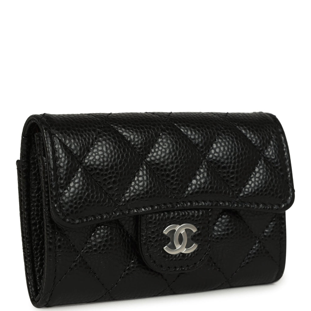 Chanel Classic Card Holder Wallet Black Caviar Silver Hardware Shop for an authentic Chanel classic cardholder in black caviar leather with silver hardware in new and never worn condition at Madison Avenue Couture.