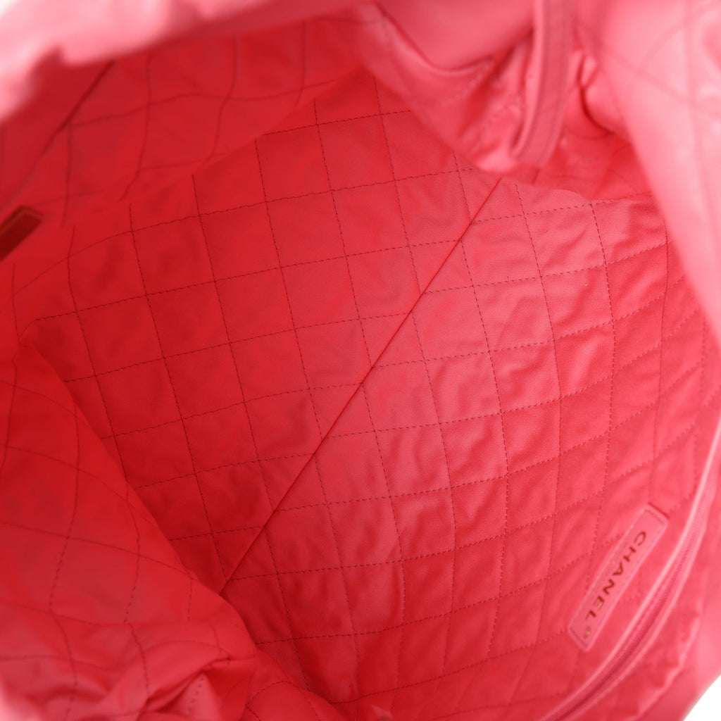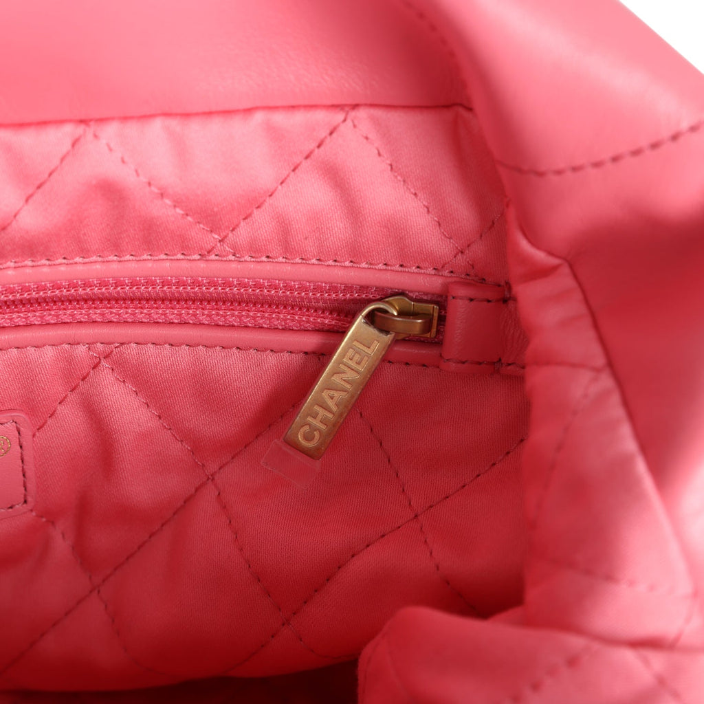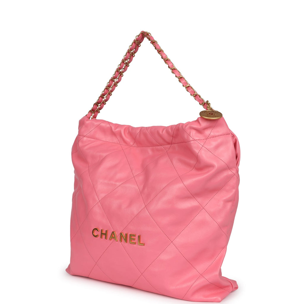 Chanel Small 22 Bag Pink Calfskin Gold Hardware Shop for an authentic Chanel Small 22 bag in pink calfskin leather with gold tone hardware in new and never worn condition at Madison Avenue Couture.