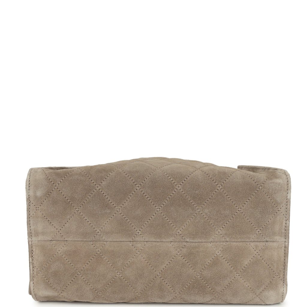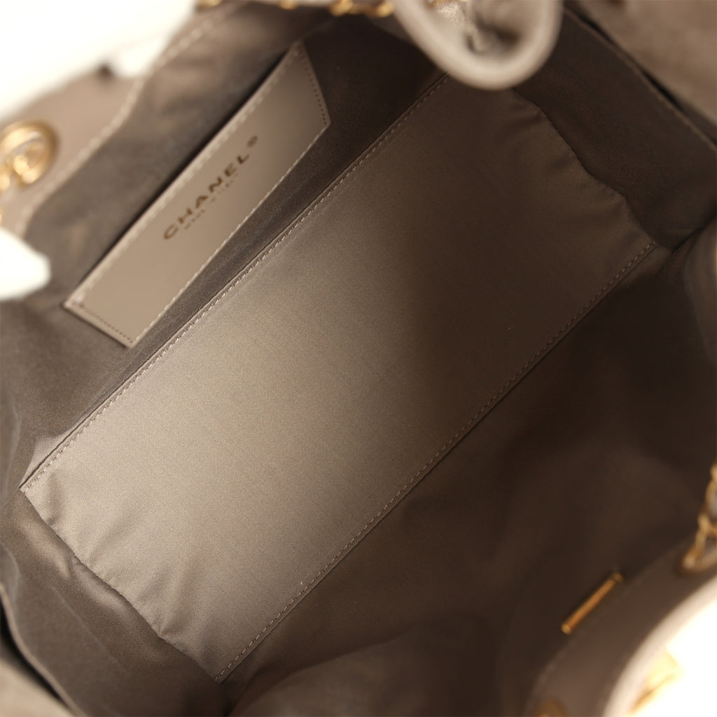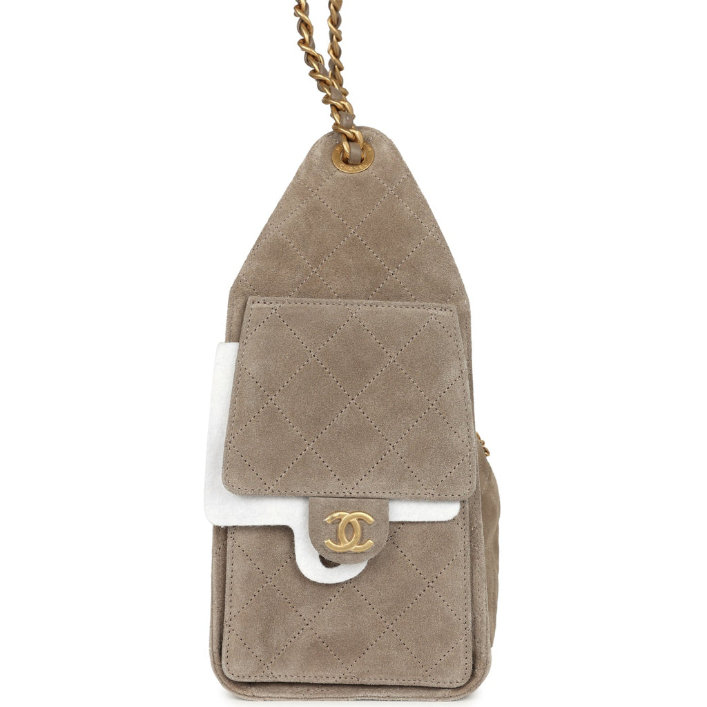 Chanel Small 25 Hobo Bag Dark Grey Suede Antique Gold Hardware Shop for an authentic Chanel Small 25 Hobo Bag in dark grey suede with antique gold hardware in new and never worn condition at Madison Avenue Couture.