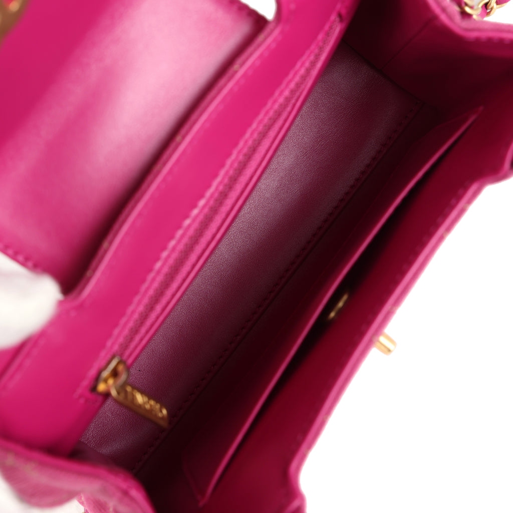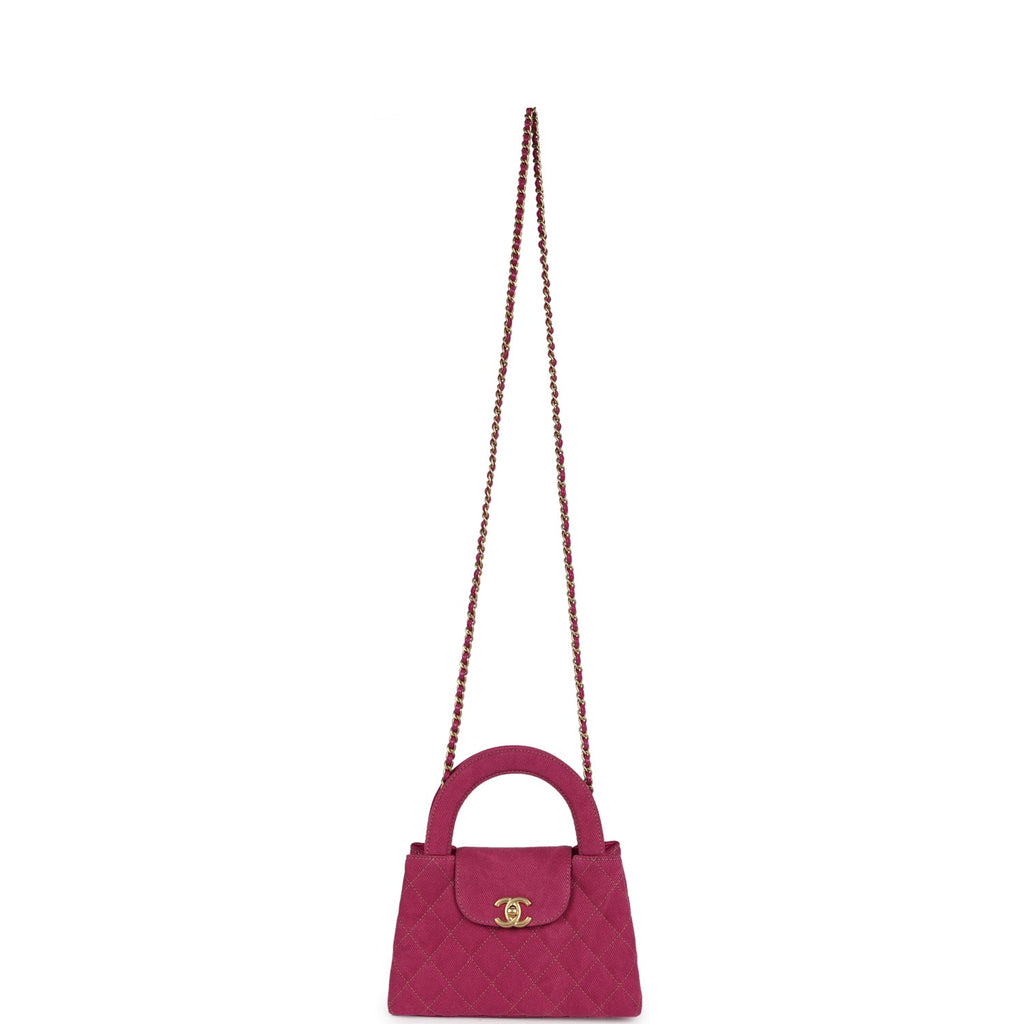 This Small Kelly is in fuchsia pink washed denim fabric with brushed gold hardware, contrast green stitching, two flat back top handles, interwoven brushed gold and pink leather shoulder strap, and the signature CC turnlock closure.The interior is lined with fuchsia pink leather and has one zipper and one slip pocket.Collection: 24A (RFID chip)Origin: ItalyCondition: New and never worn (plastic on hardware)Accompanied by: Chanel box, Chanel dustbag, carebook, retail UPC, ribbon, RFIDMeasurements:  7.75″ width x 5″ height x 2.5″ depth; 2.5″ handle drop 23″ strap drop