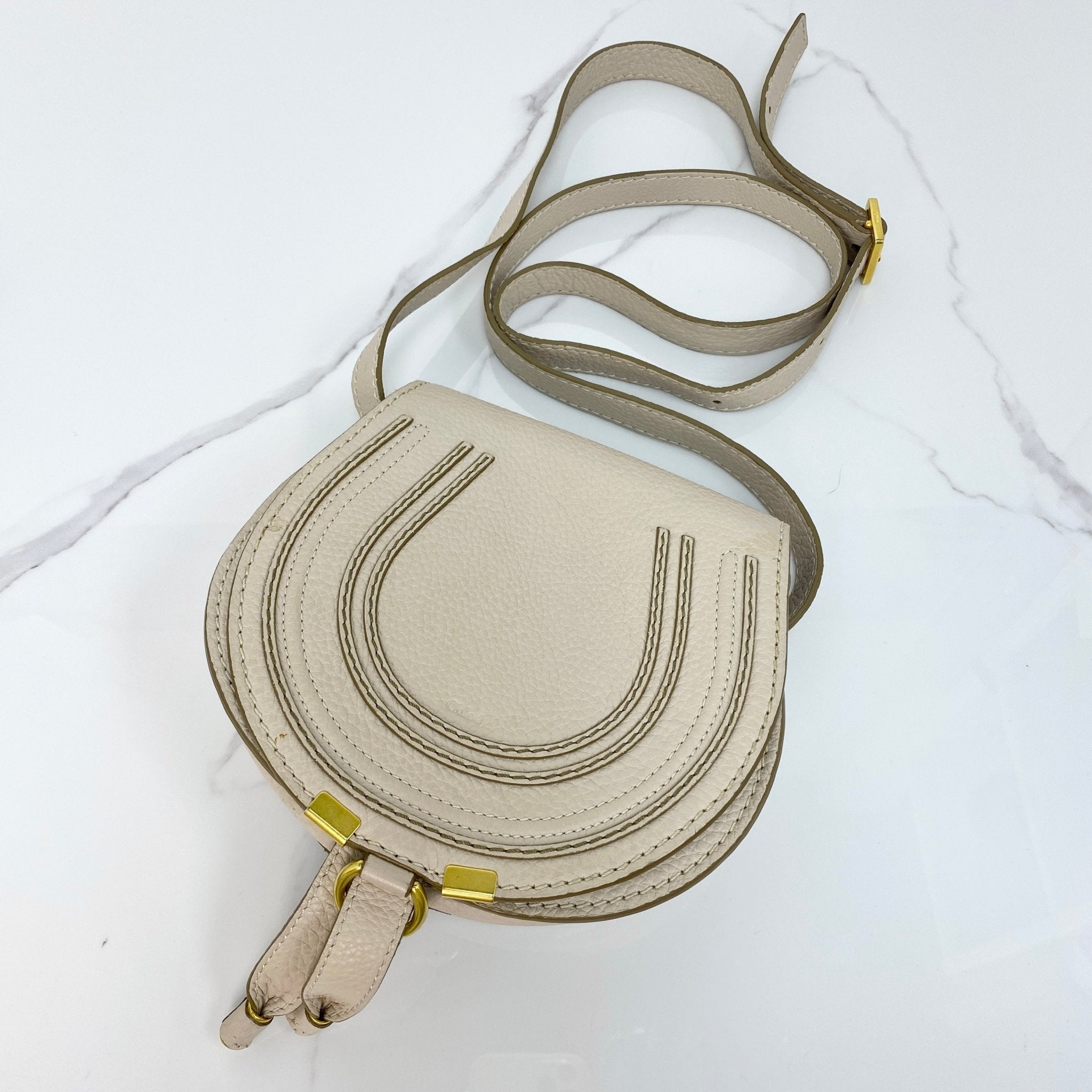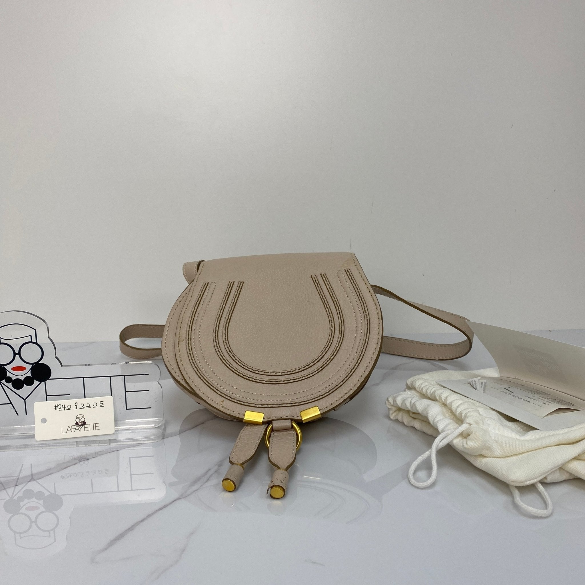 Embrace the season’s love for neutrals with the Chloé Marcie Crossbody Bag in beige. This timeless piece is perfect for the current trend of earthy tones and relaxed, effortless style. Its soft leather and iconic saddle shape make it the ideal accessory for transitional weather, pairing beautifully with cozy knits and layered outfits for a chic, seasonal look.