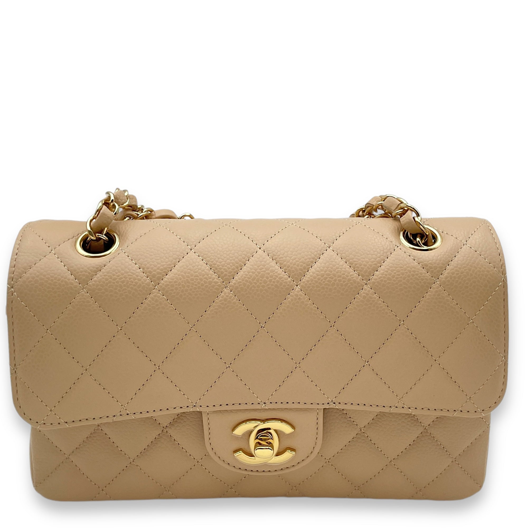 Be the first to review “Classic Double Flap Small Beige Clair Shoulder Bag in Caviar Leather, Gold hardware”