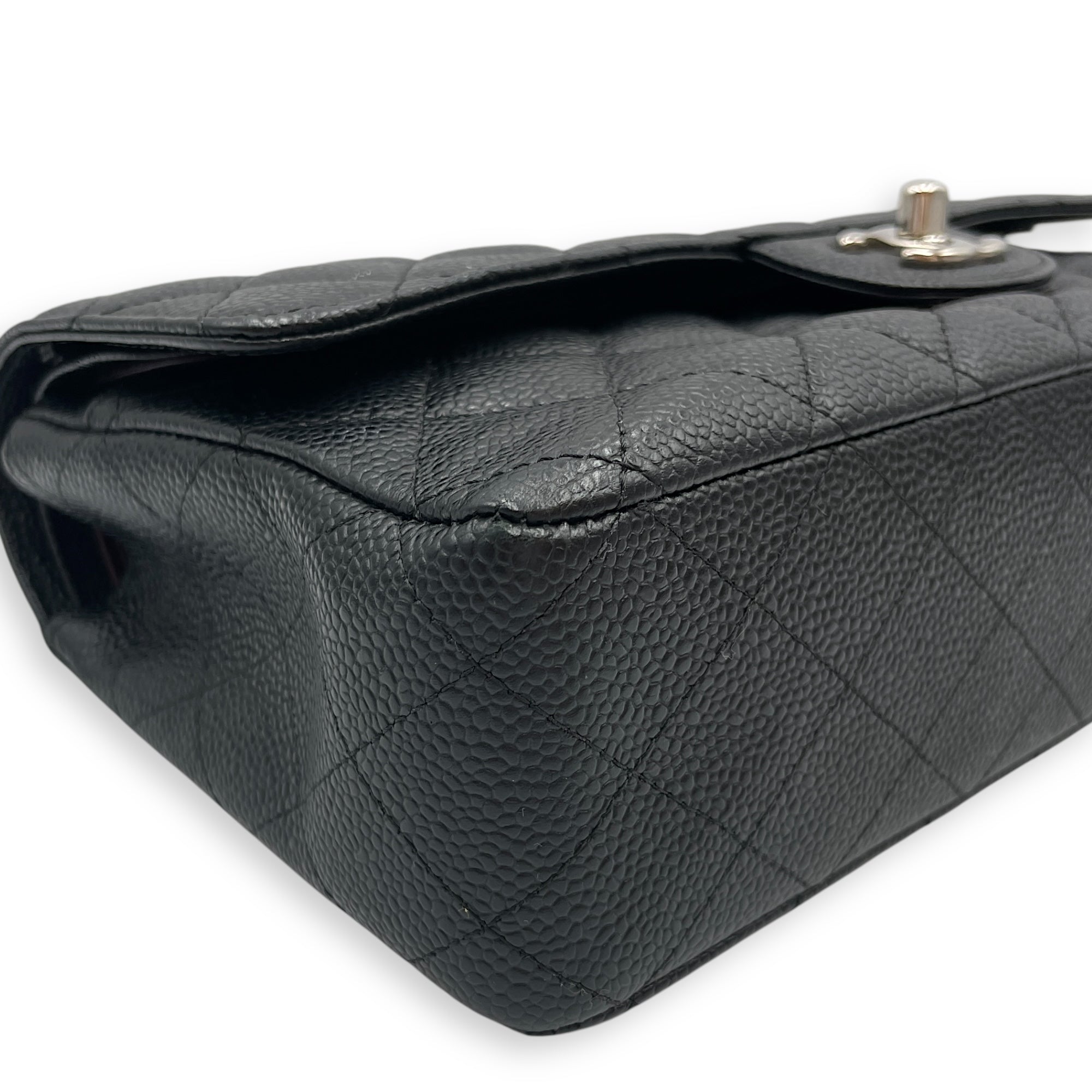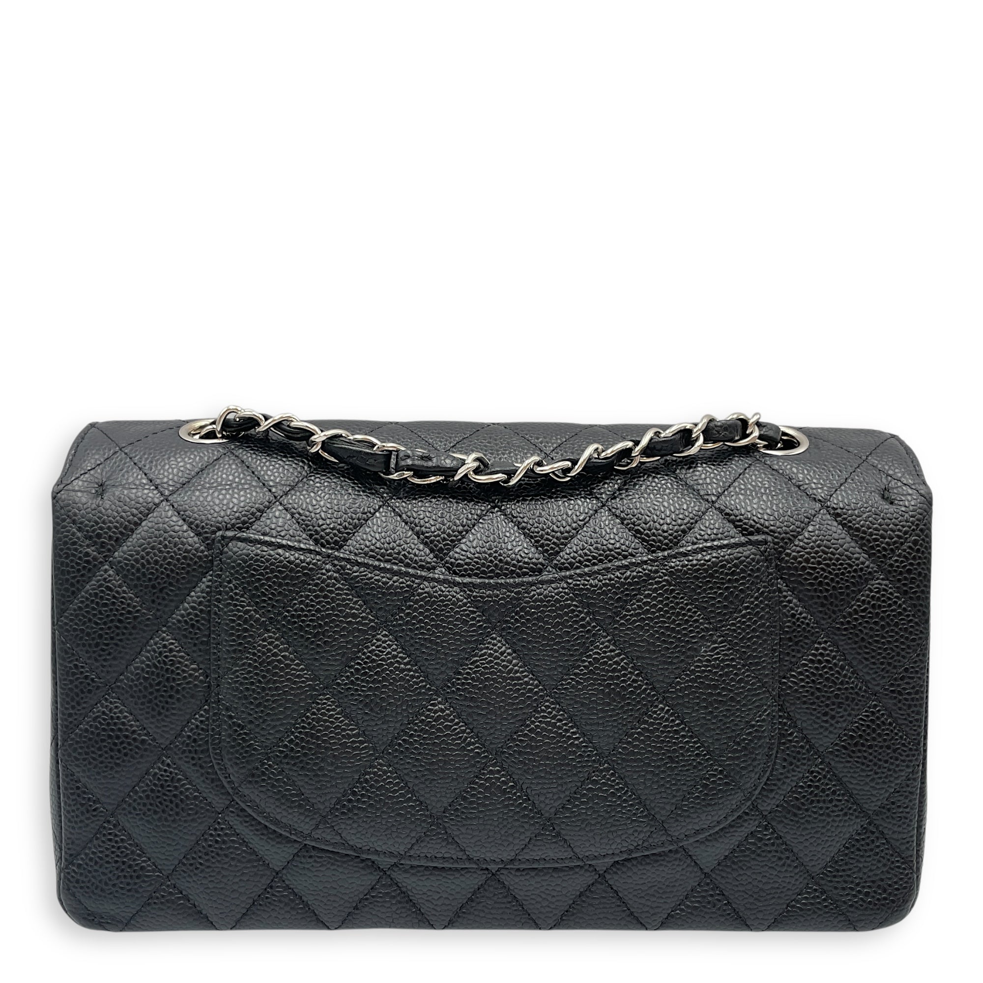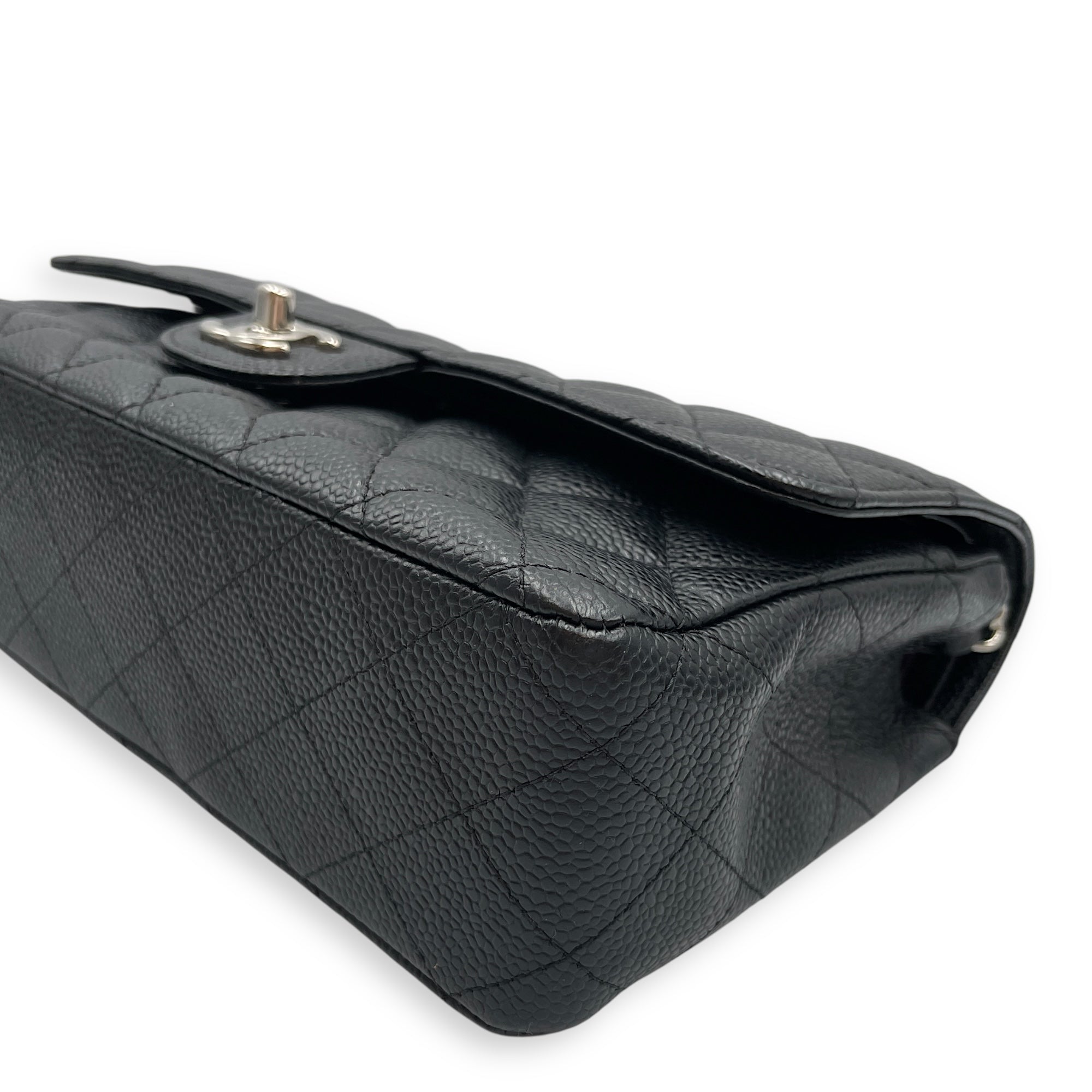 Classic Medium Black Double Flap Bag in Caviar Leather, Silver hardware