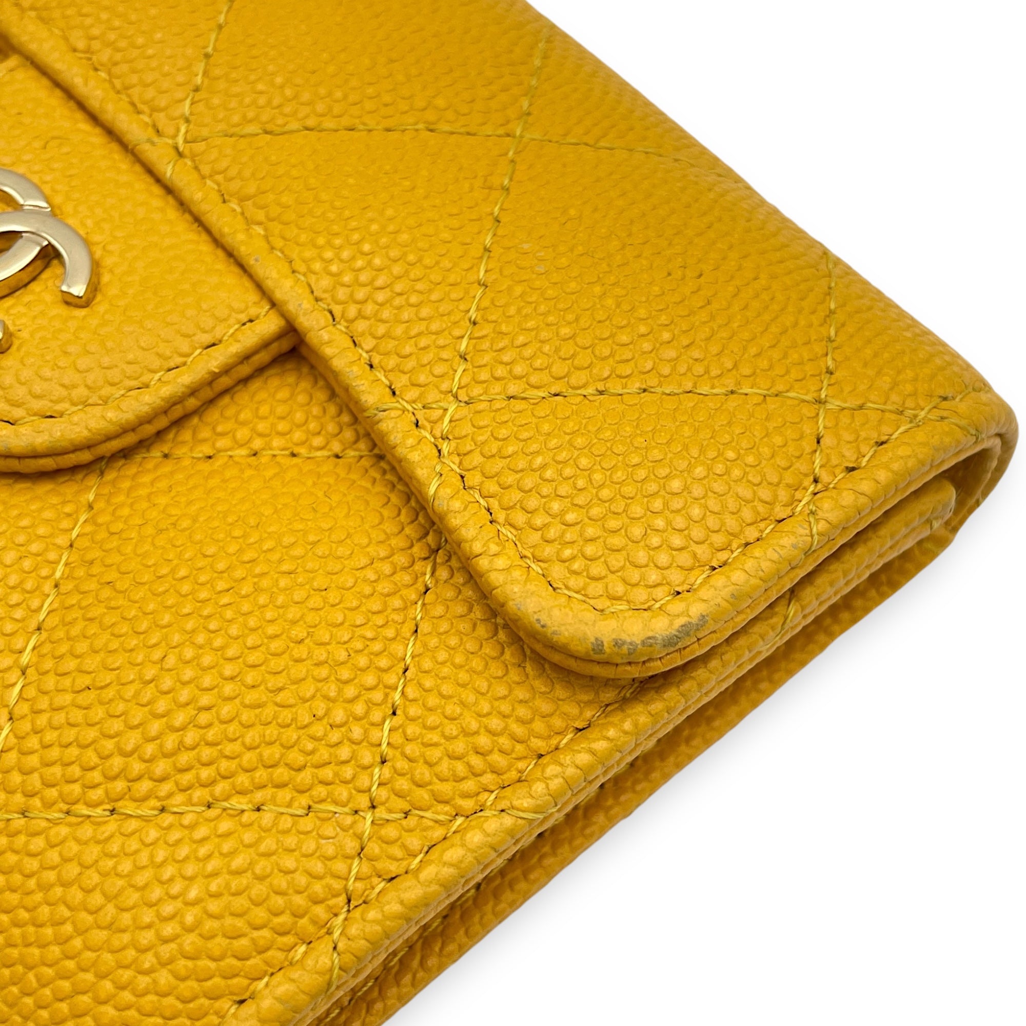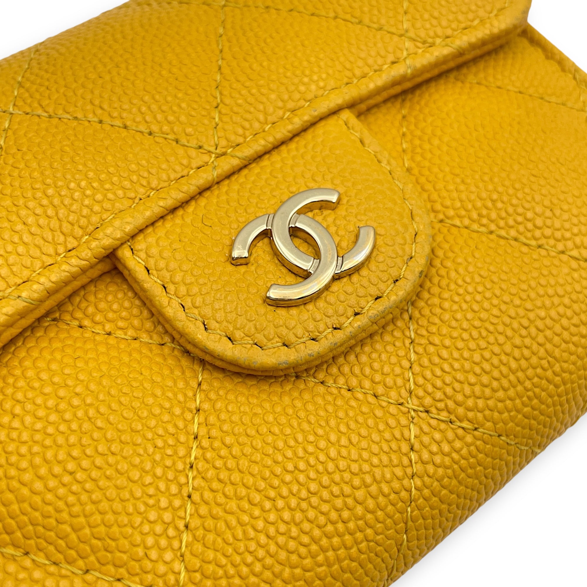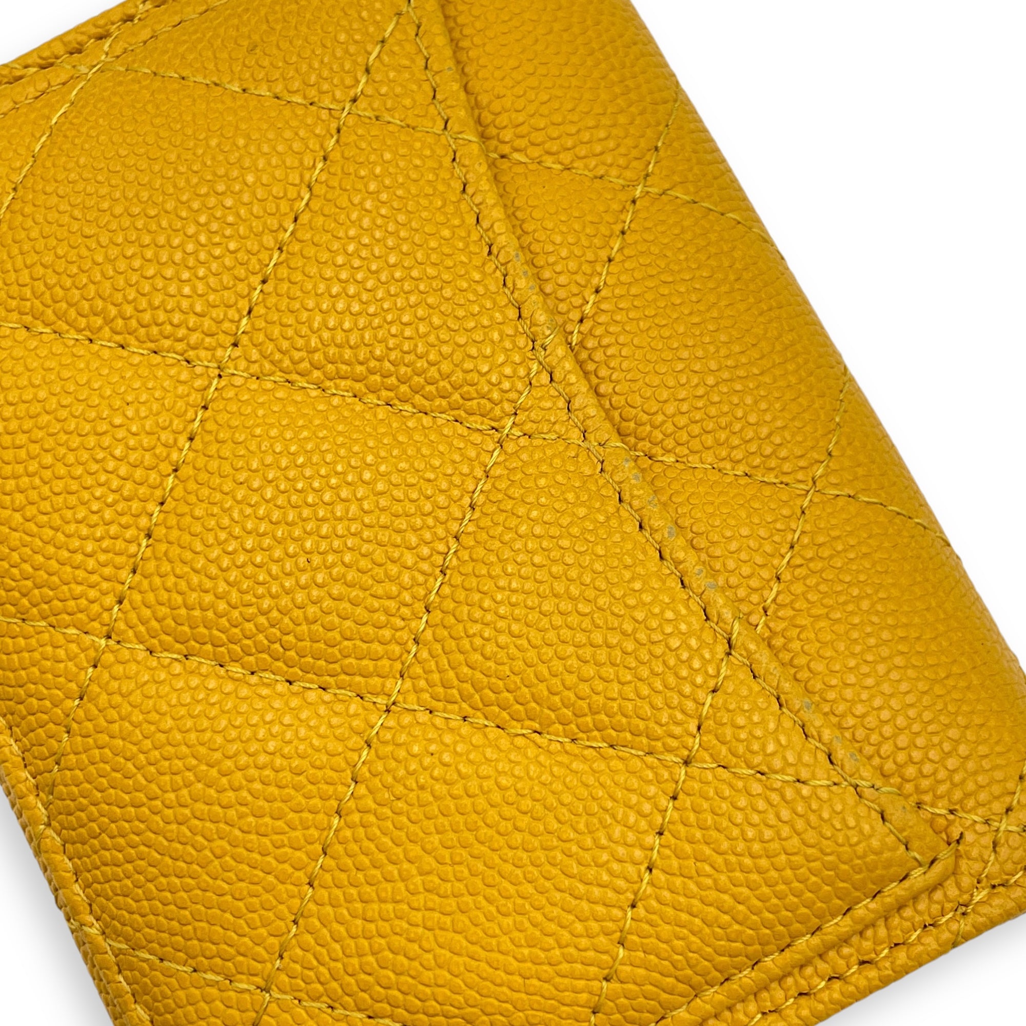 Classic XL Yellow Card Holder in Caviar Leather, Gold hardware