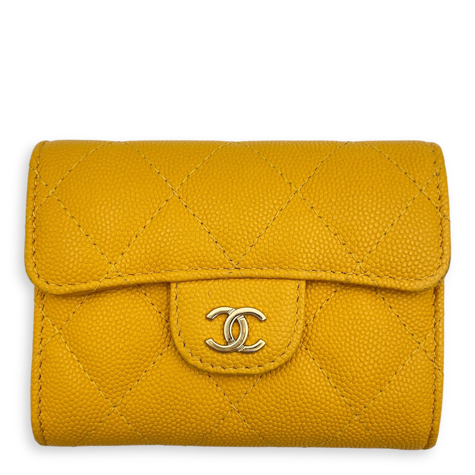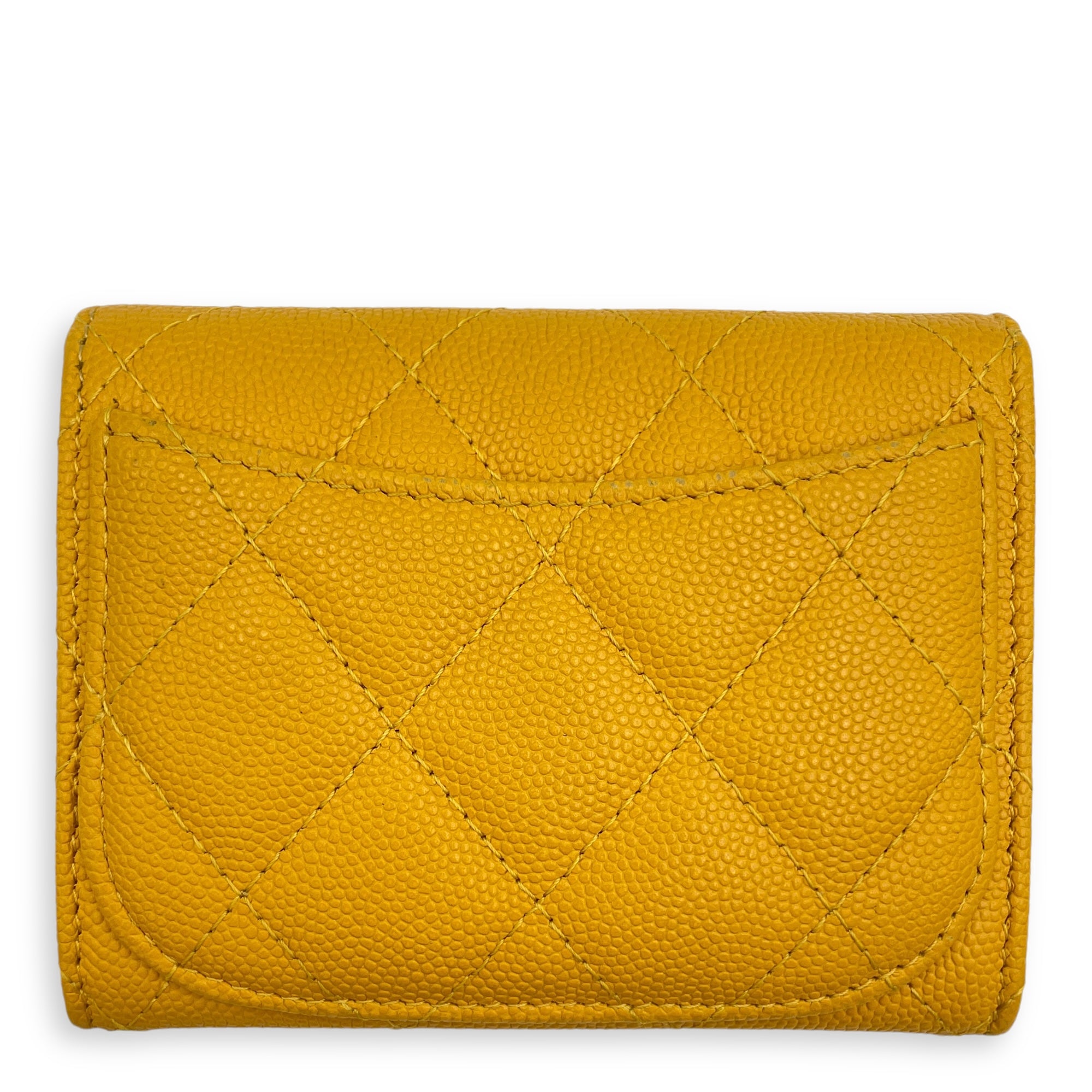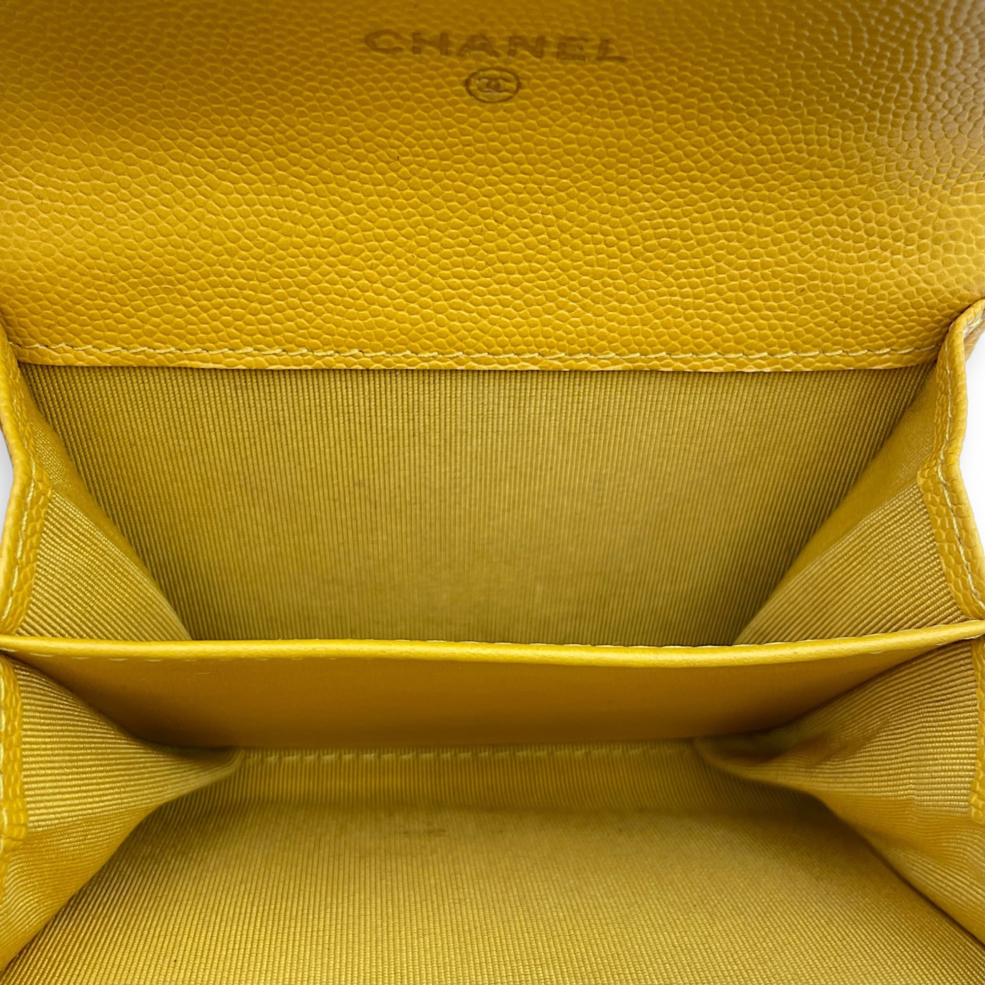 Classic XL Yellow Card Holder in Caviar Leather, Gold hardware