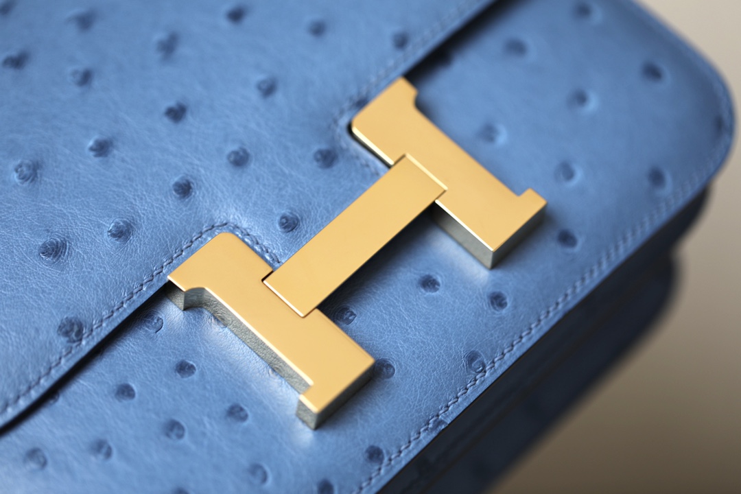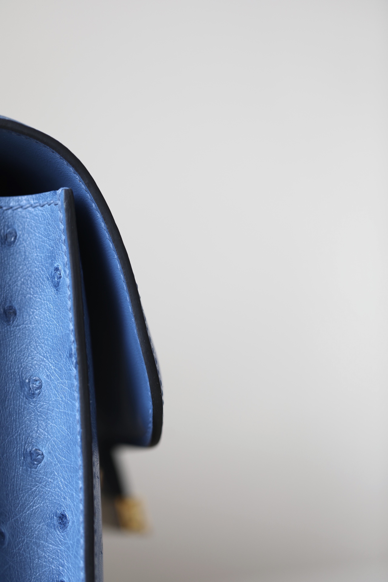 Constance 19 Ostrich Bleu Hydra (T7) Gold Hardware