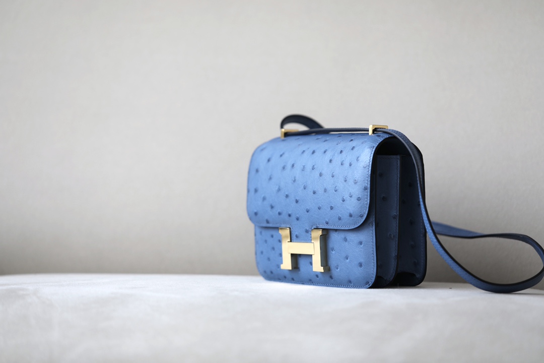 Be the first to review “Constance 19 Ostrich Bleu Hydra (T7) Gold Hardware”