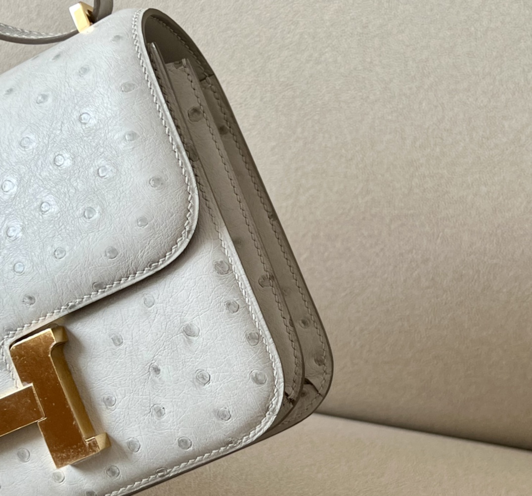 Be the first to review “Constance 19 Ostrich Gris Perle (80) Gold Hardware”
