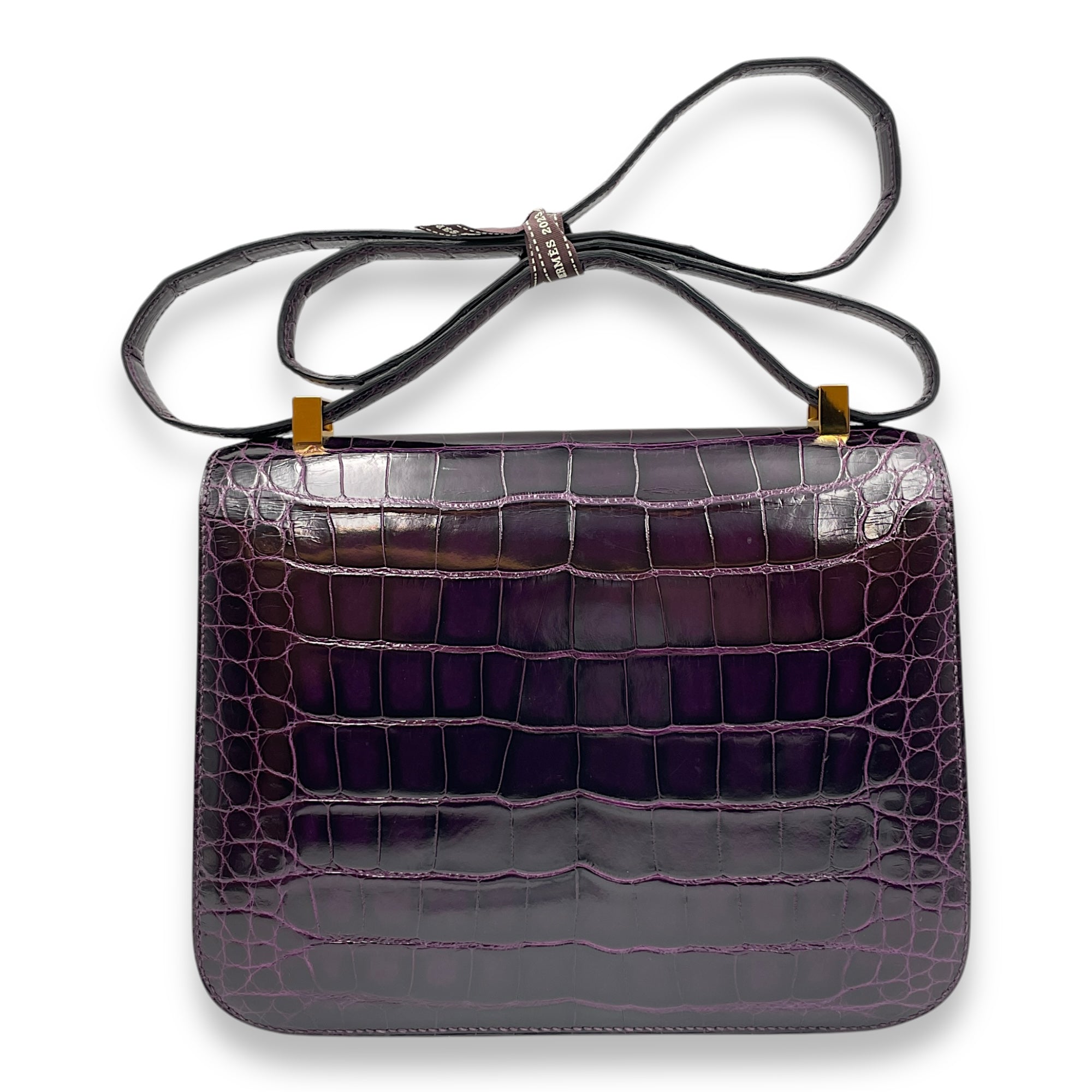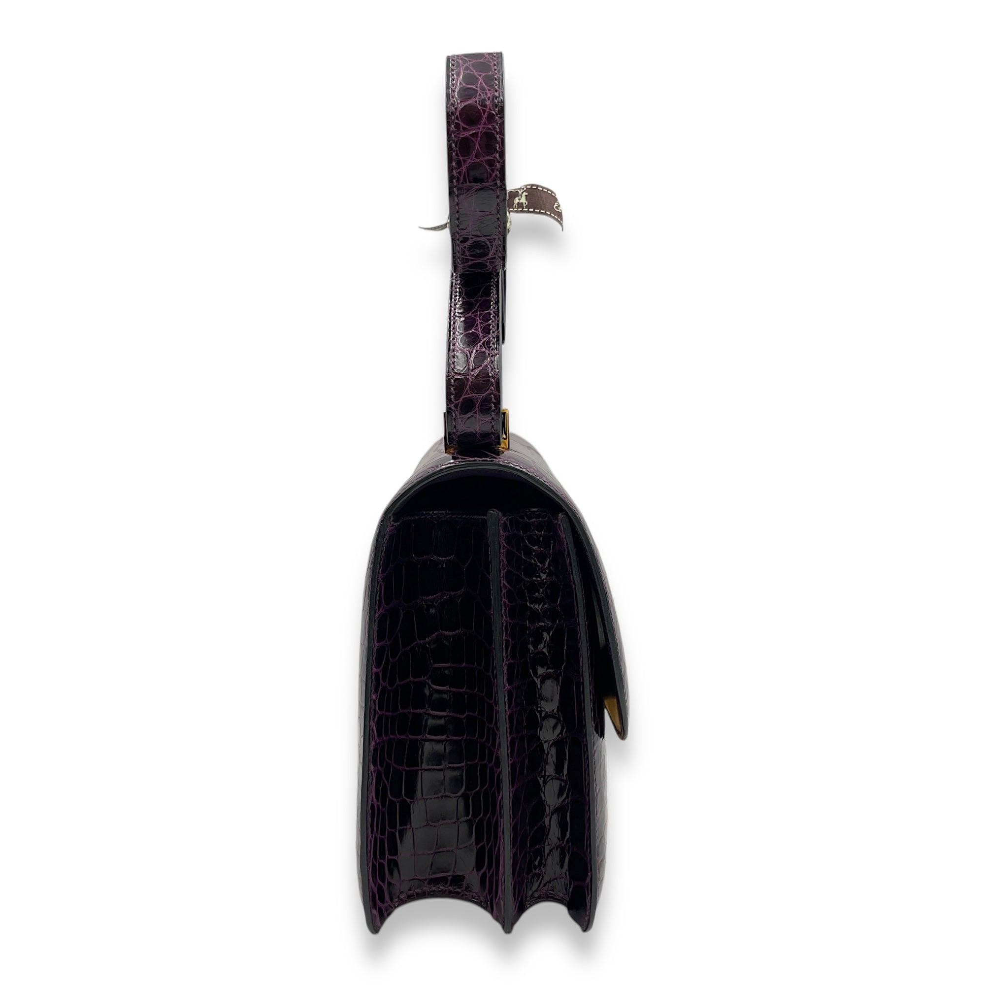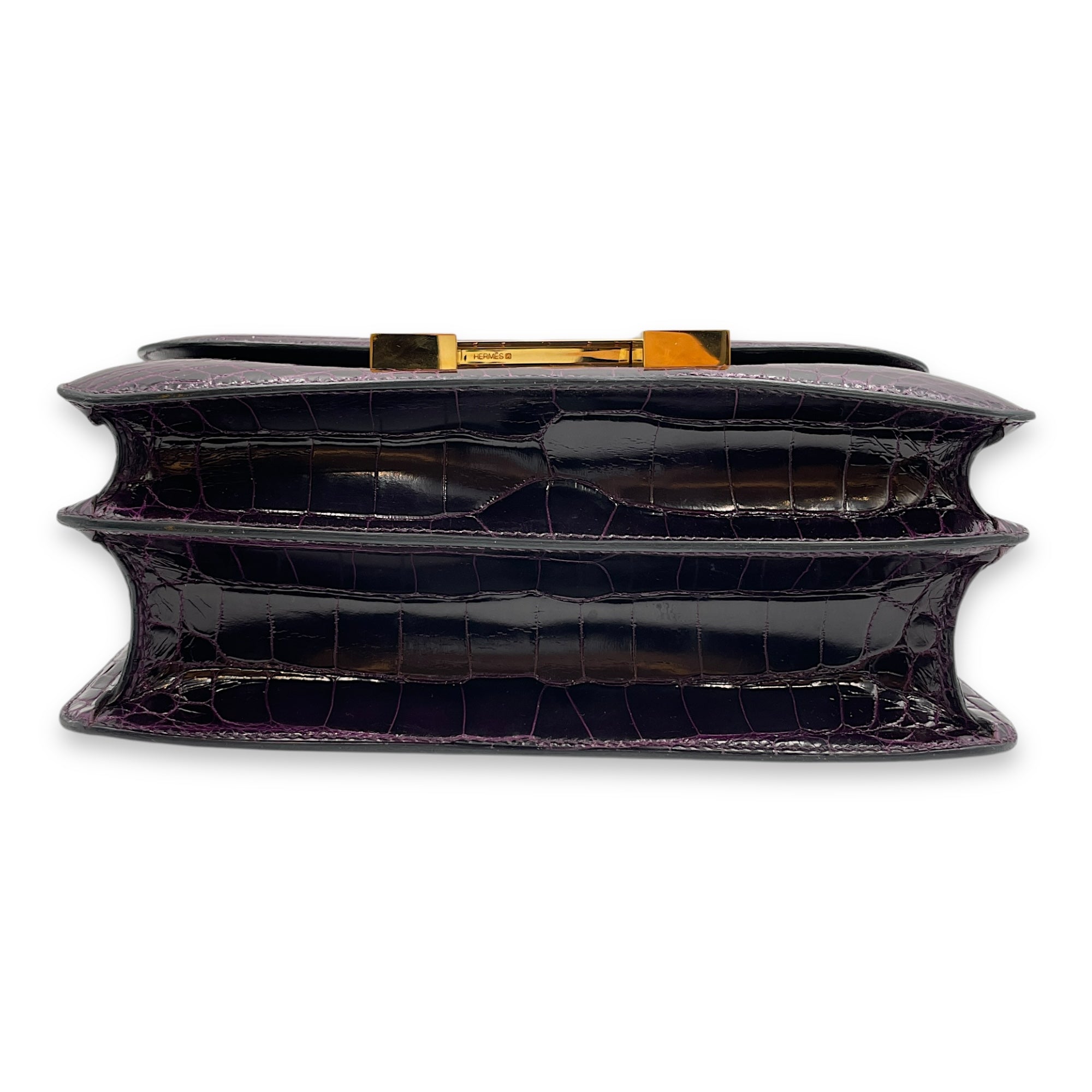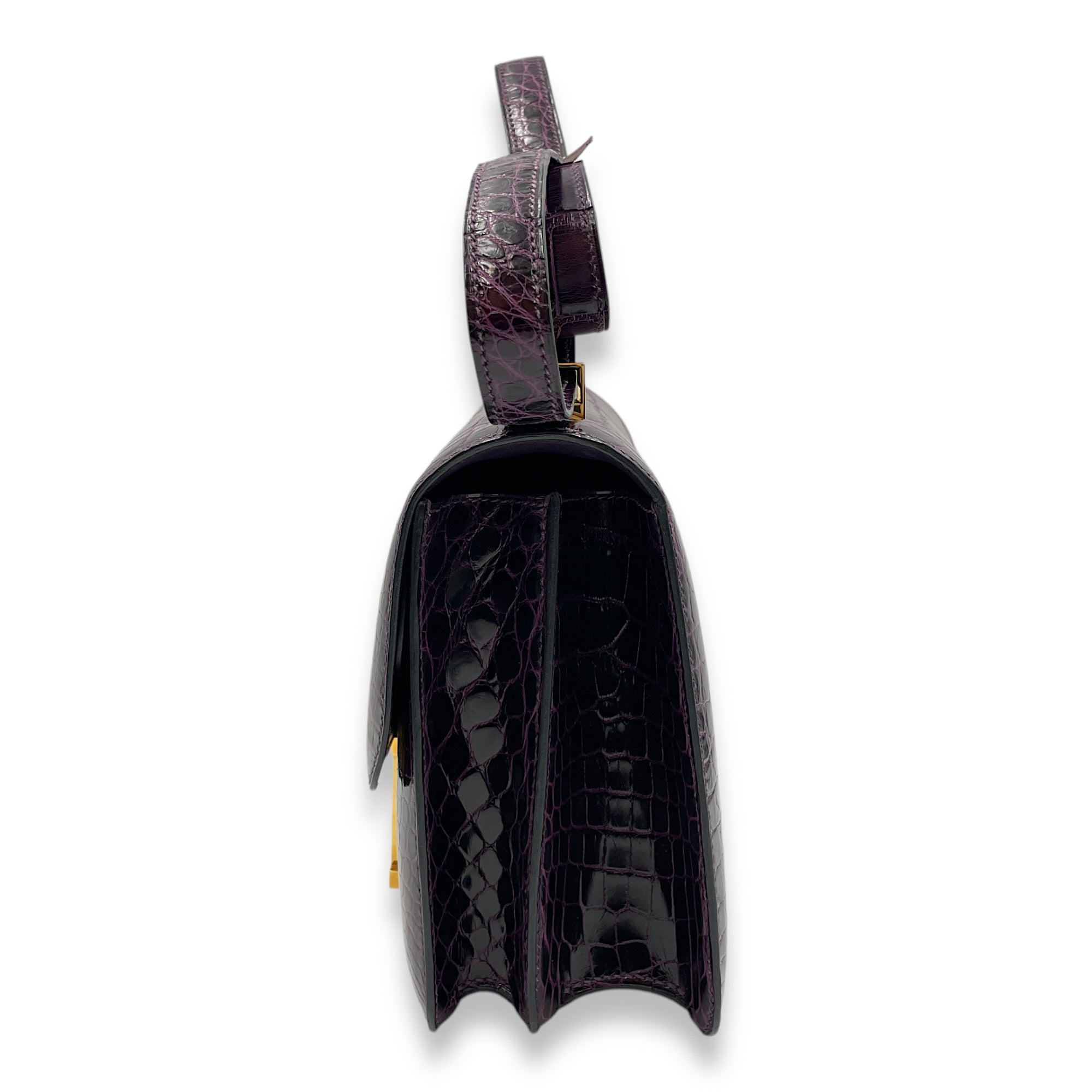 Constance 24 Amethyst in Shiny Alligator, Gold hardware