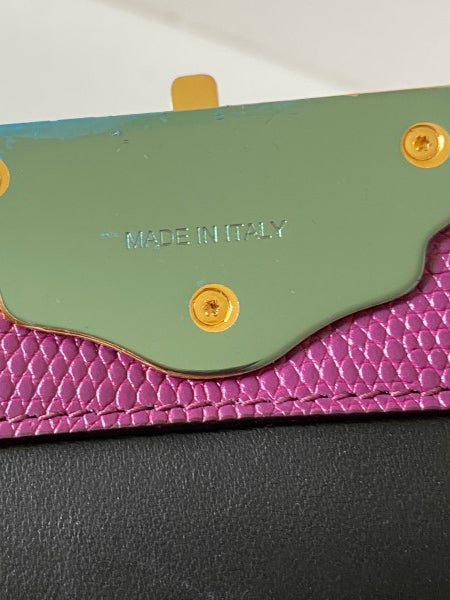 • Material: Purple Iguana Print Leather with Gold Bee Embellishment