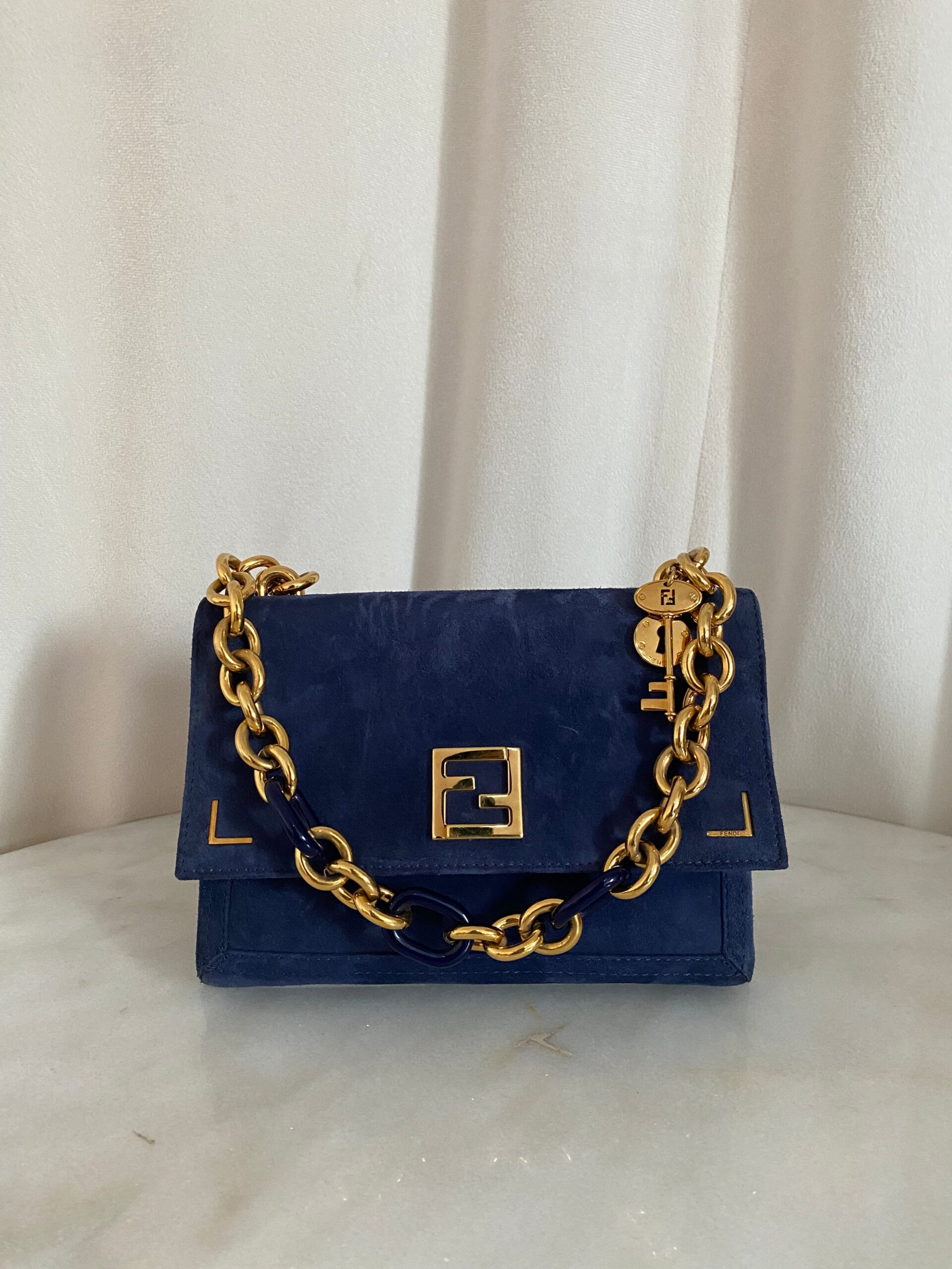 Be the first to review “Fendi Blue Velvet Flap Bag”