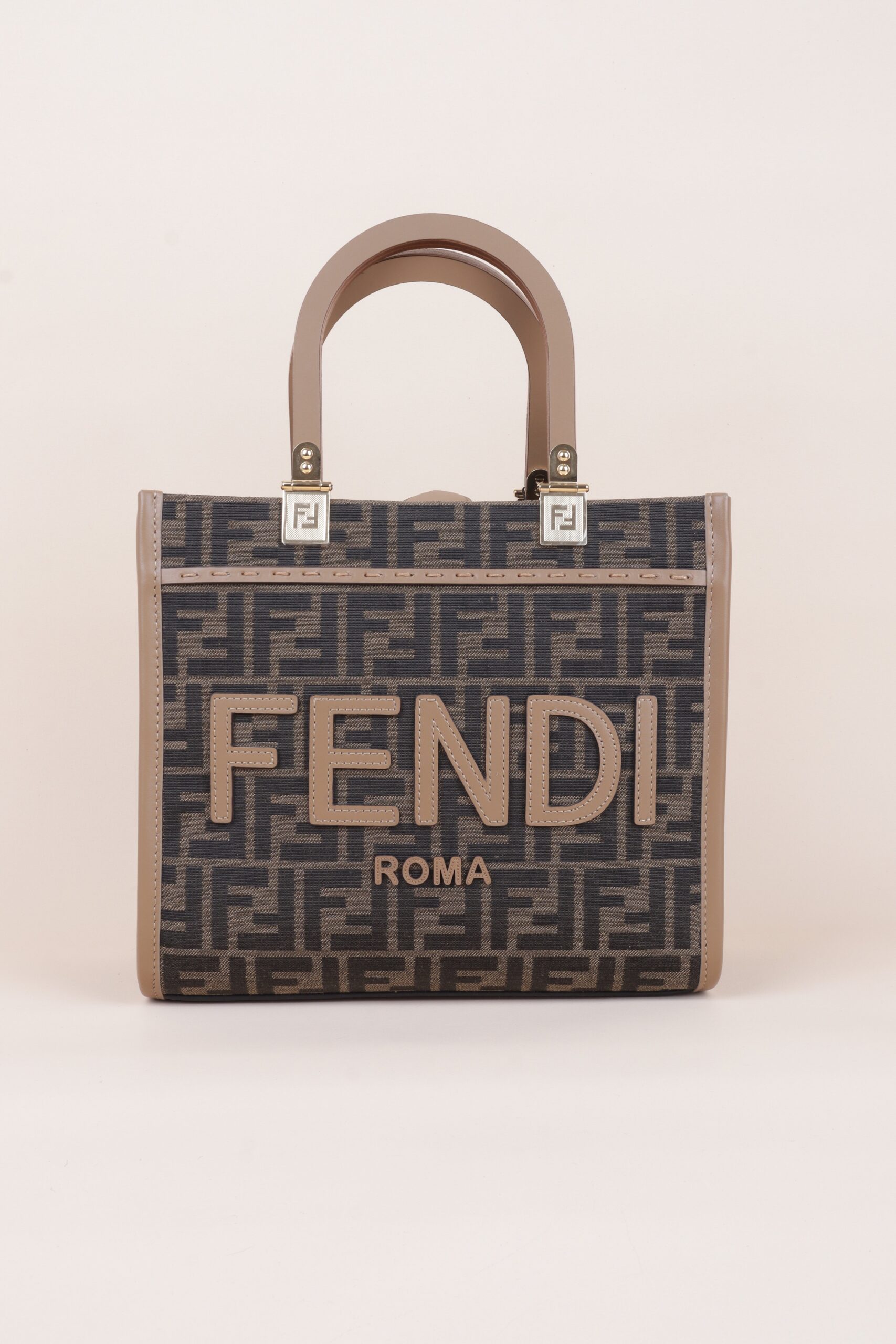 Fendi Brown FF Sunshine Small Tote Bag with Strap