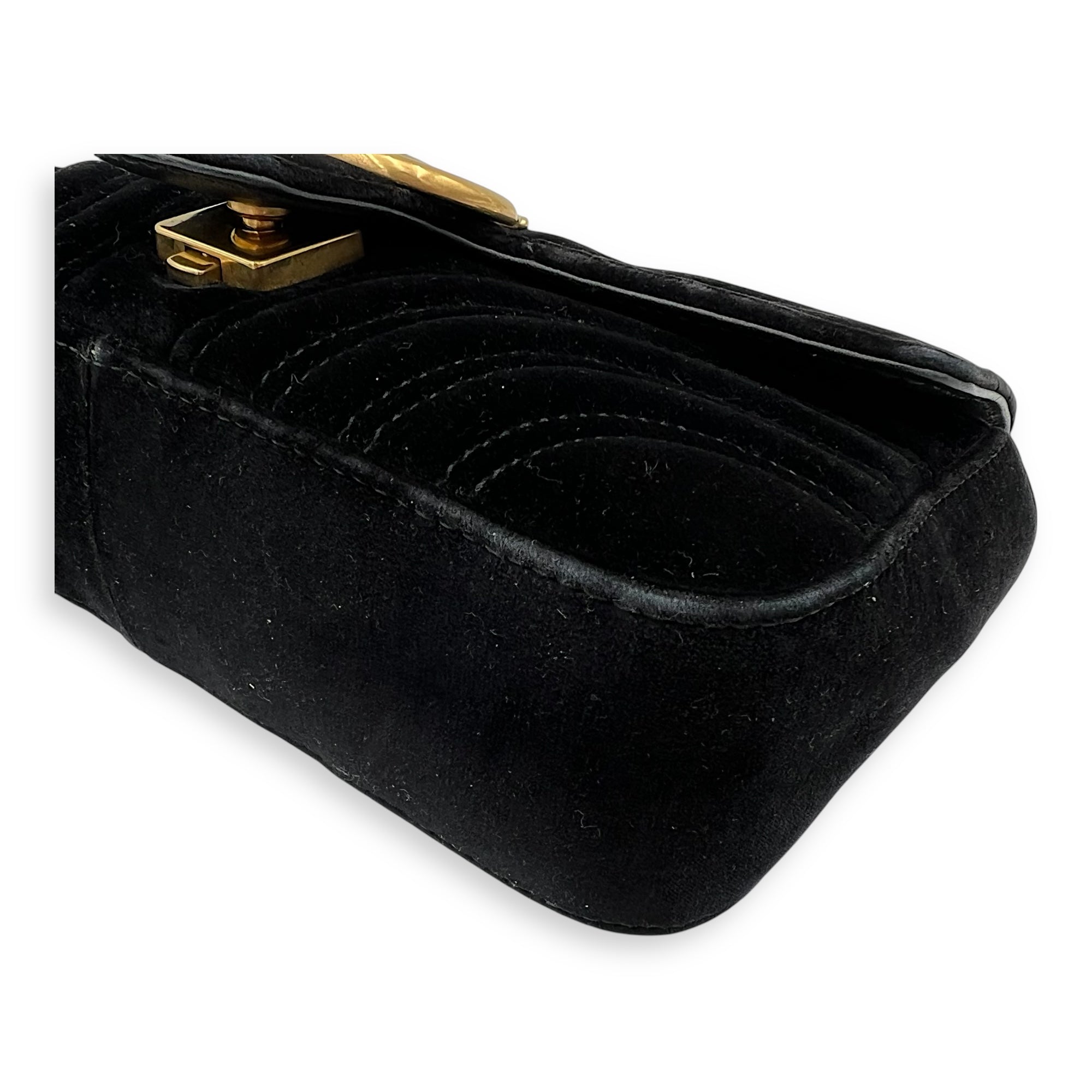 GG Marmont Shoulder Bag Mini Black in Velvet, Gold hardware