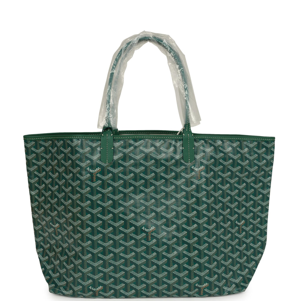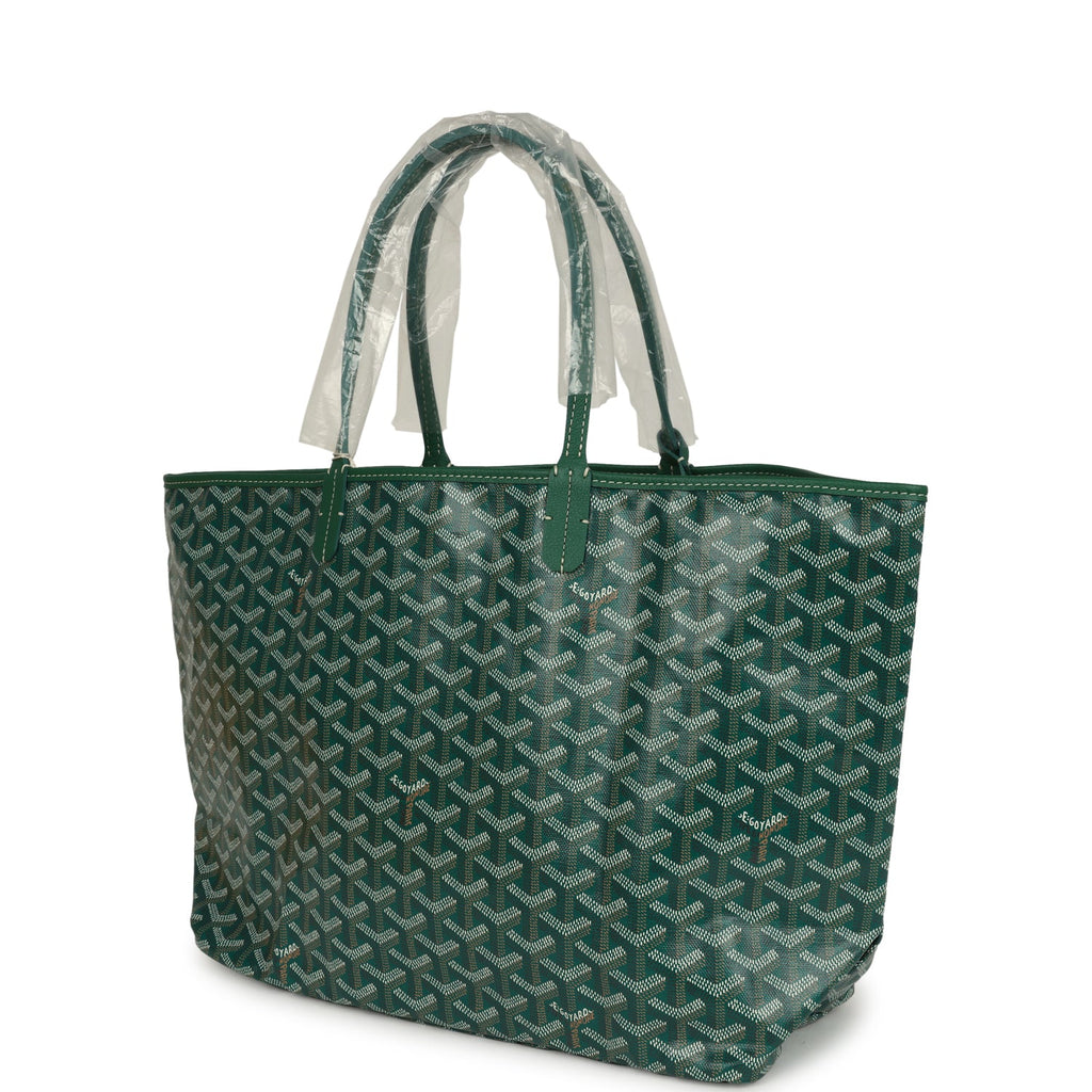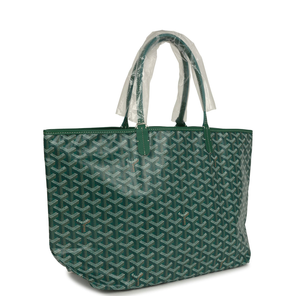 Goyard Goyardine Green Saint Louis PM Tote Bag Palladium Hardware Shop for an authentic Goyard Green Goyardine Saint Louis PM tote with palladium hardware in new and never worn condition at Madison Avenue Couture.