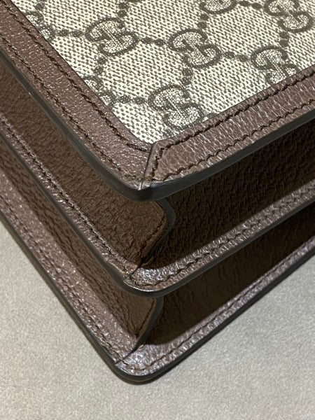 • Material: Ebony GG Supreme Canvas and Brown Leather Trim with Green/Red Web