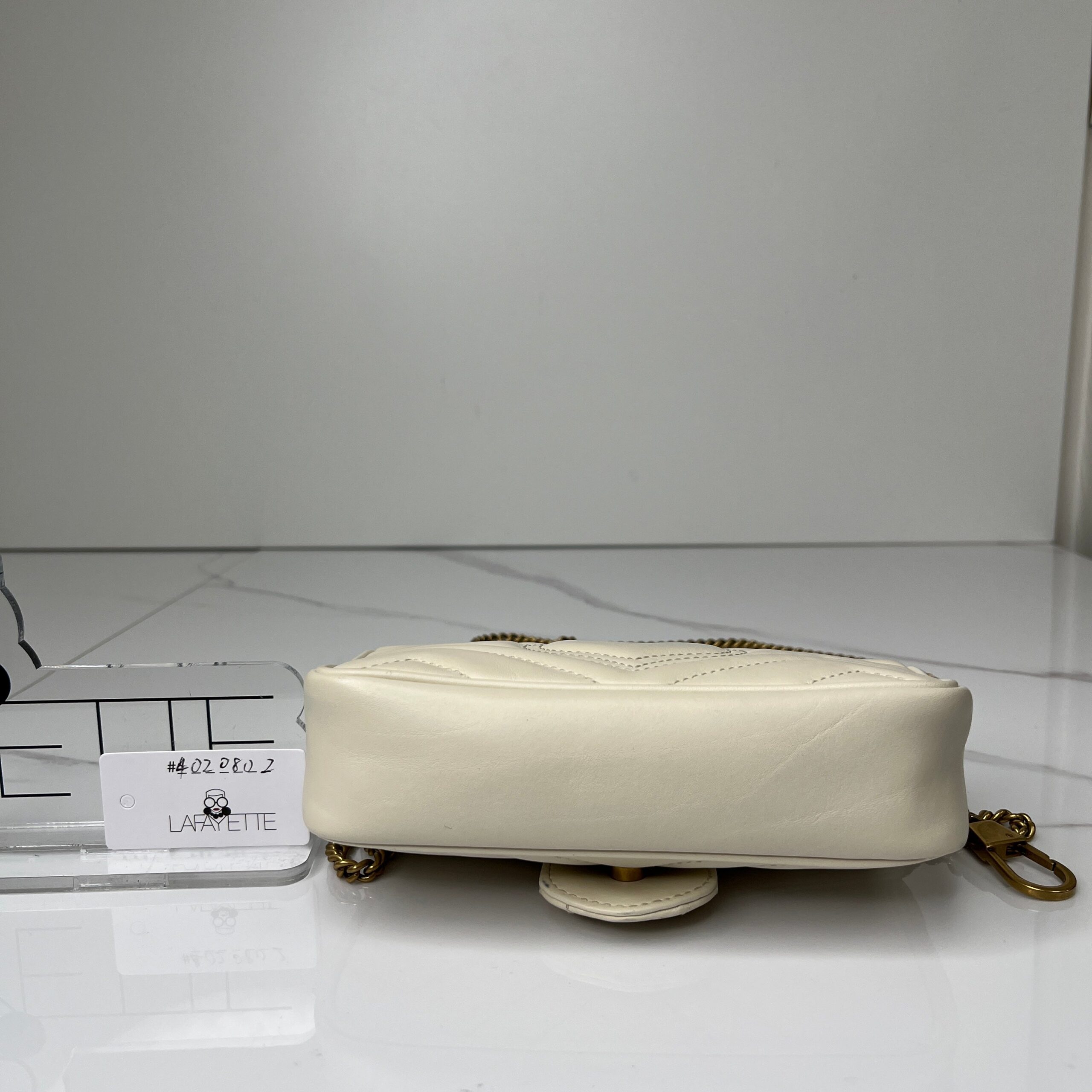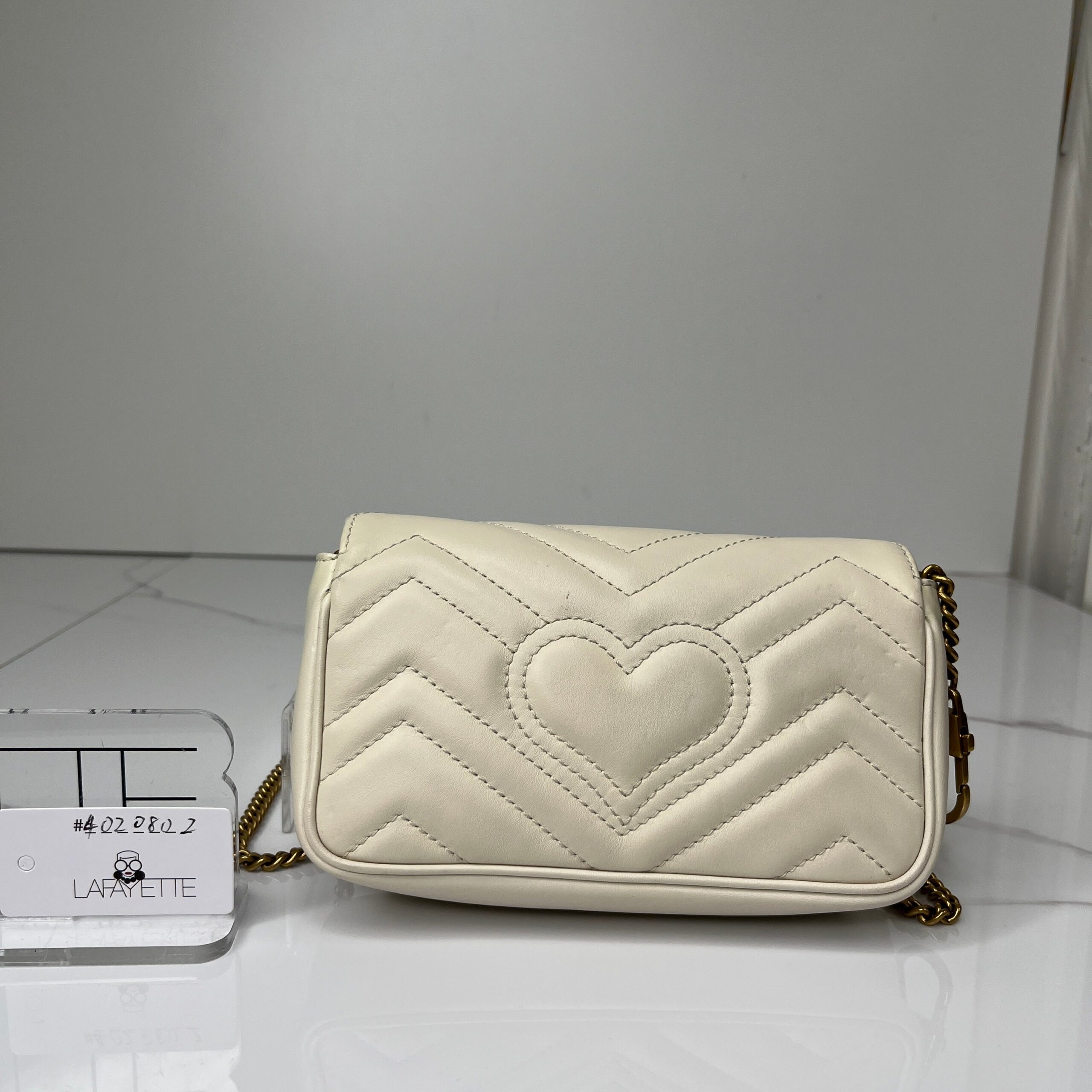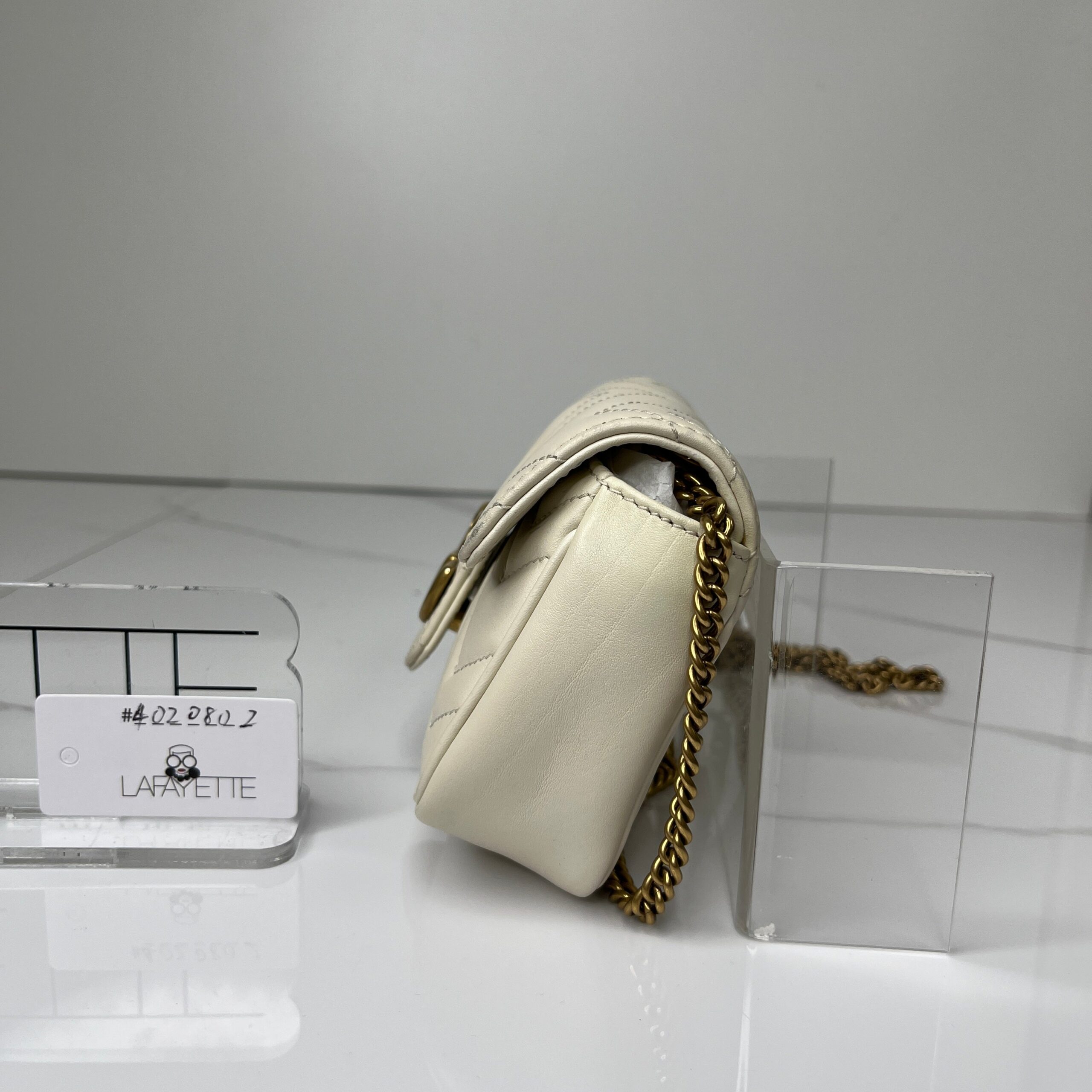 Material/Leather Type: White Matelassé LeatherGucci Marmont Super Mini