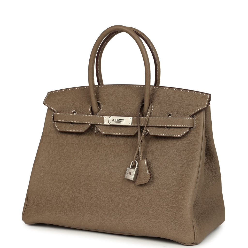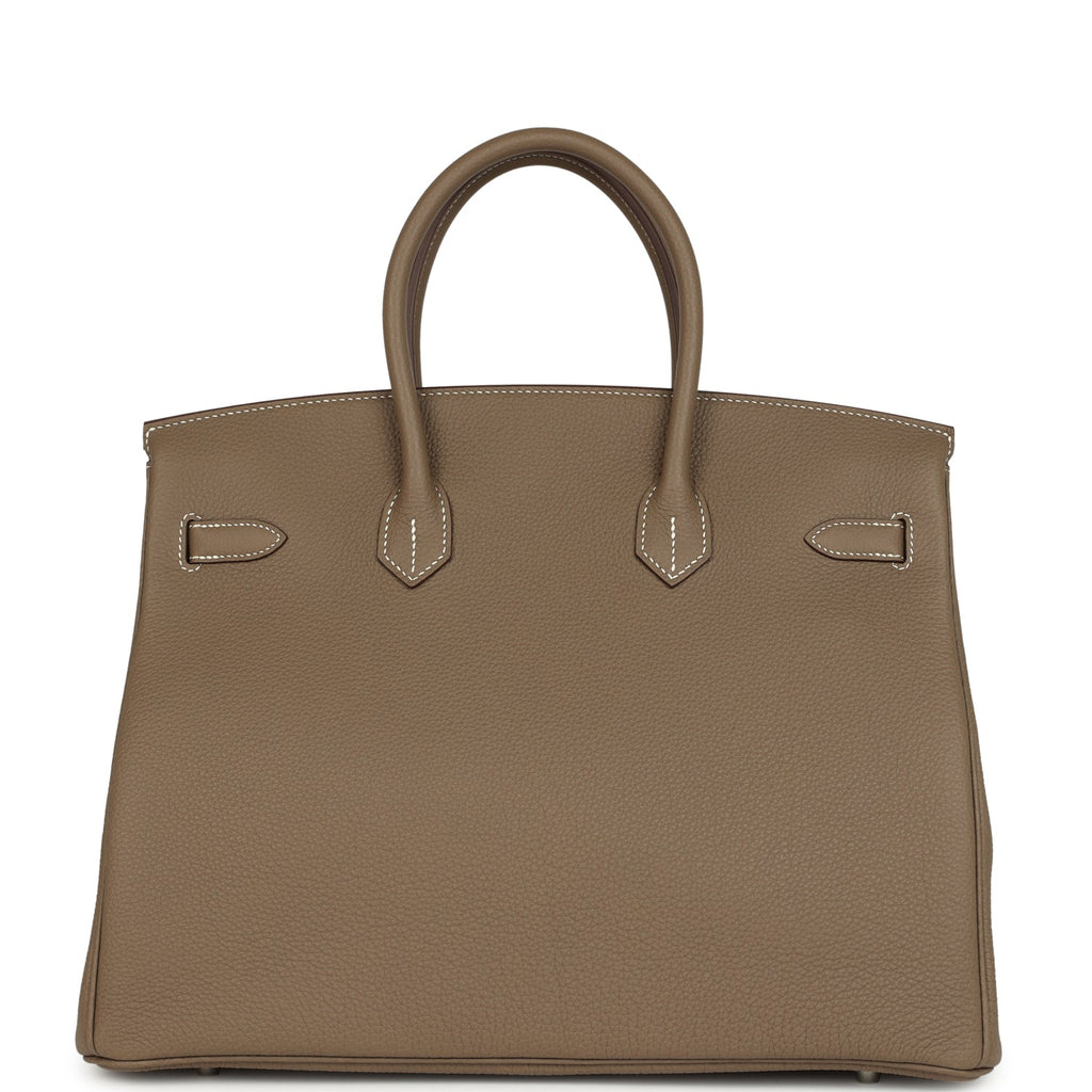 Hermes Birkin 35 Etoupe Togo Brushed Palladium Hardware Shop for an authentic Hermes Birkin 35 in Etoupe togo leather with brushed palladium hardware in new and never worn condition at Madison Avenue Couture.