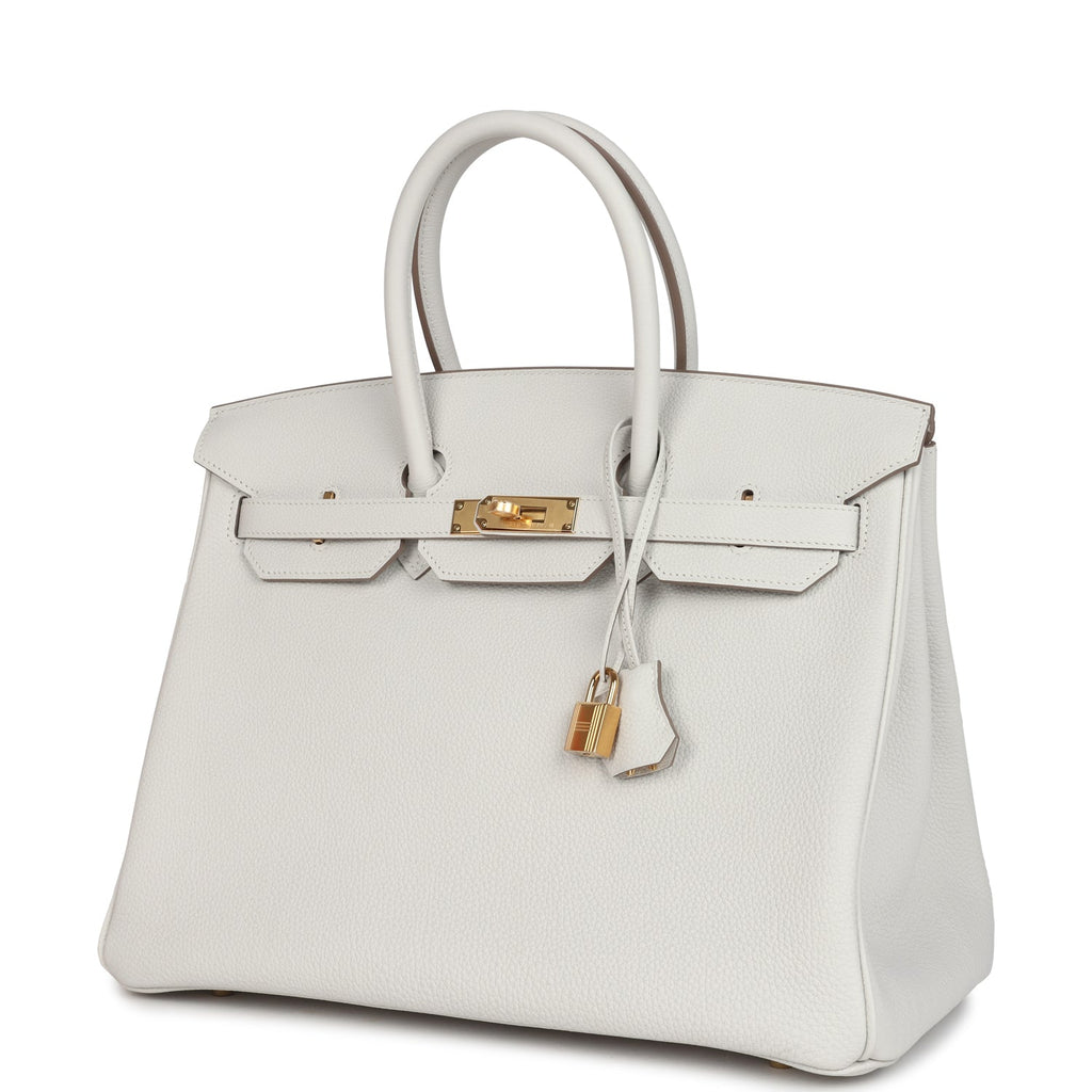 Hermes Birkin 35 Gris Pale Togo Gold Hardware Shop for an authentic Hermes Birkin 35 in Gris Pale togo leather with gold hardware in new and never worn condition at Madison Avenue Couture.