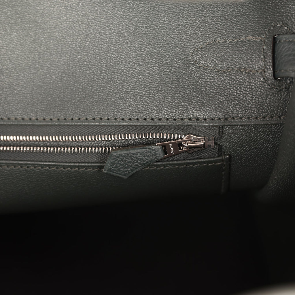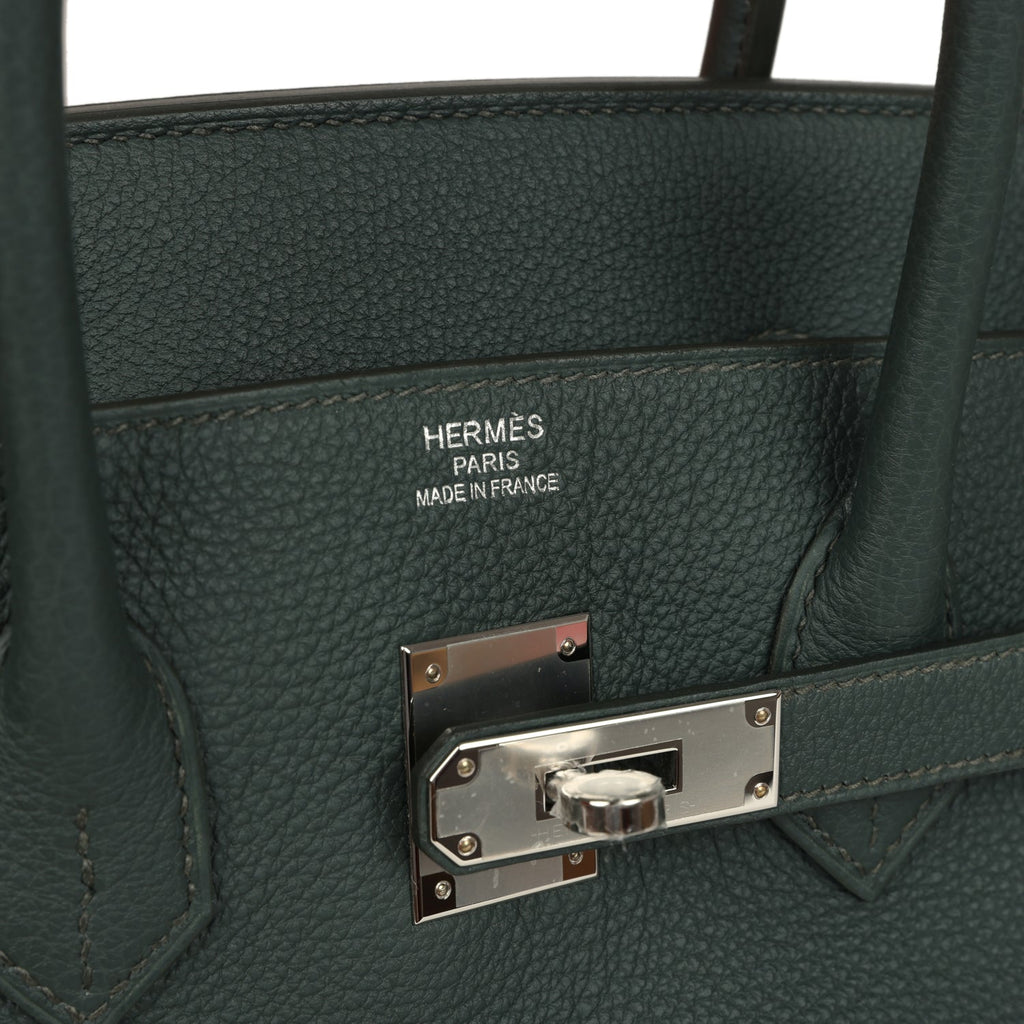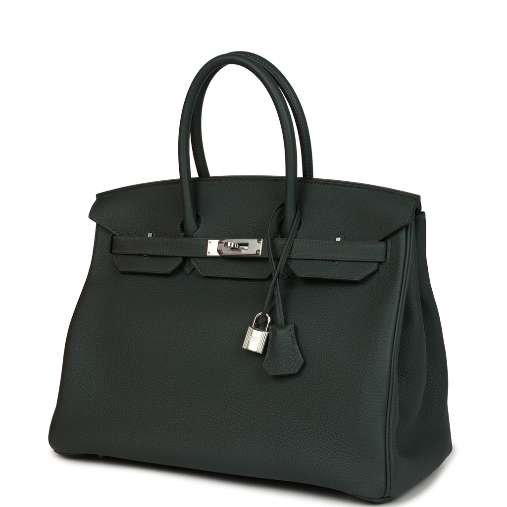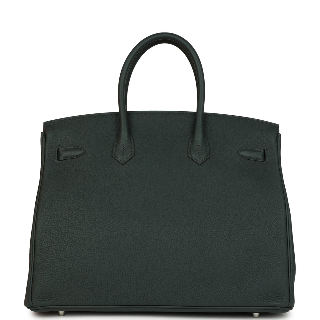 Hermes Birkin 35 Vert Mangrove Togo Palladium Hardware Shop for an authentic Hermes Birkin 35 in Vert Cypress togo leather with palladium hardware in new and never worn condition at Madison Avenue Couture.