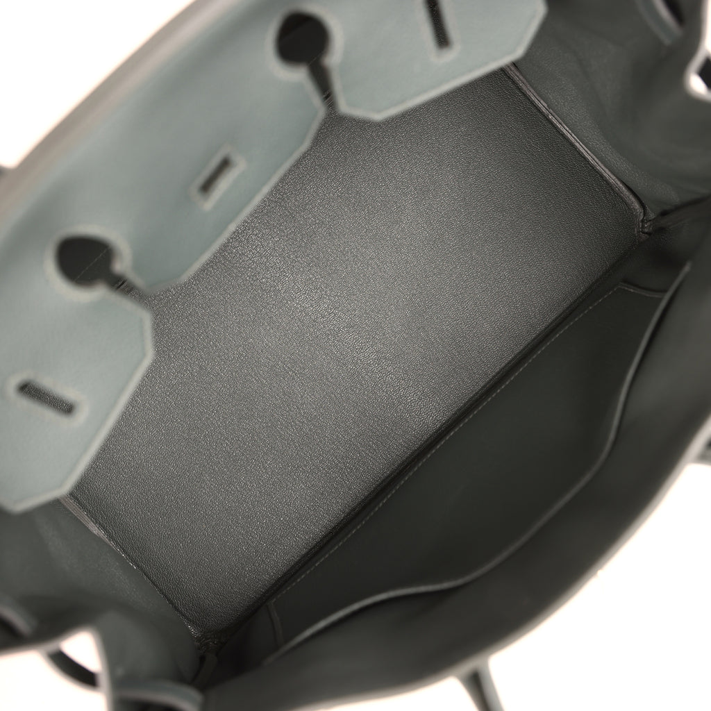 This Birkin is in Vert Mangrove togo leather with palladium hardware and has tonal stitching, front flap, two straps with center toggle closure, clochette with lock and two keys, and double rolled handles.The interior is lined with Vert Mangrove chevre leather and has one zip pocket with an Hermes engraved zipper pull and an open pocket on the opposite side.Collection: K (2025)Origin: FranceCondition: New and never worn (plastic on hardware)Accompanied by: Hermes box, Hermes dustbag, felt, clochette, lock, two keys, clochette dustbag, carebookMeasurements: 13.75″ width x 11″ height x 7″ depth; 4.25″ handle drop