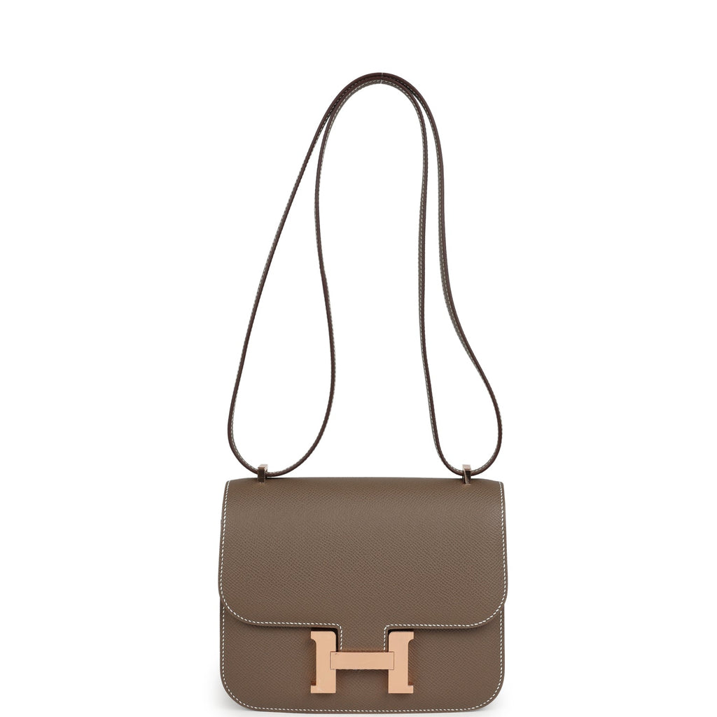 Hermes Constance 18 Etoupe Epsom Rose Gold Hardware Shop for an authentic Hermes Constance 1-18 in Etoupe epsom leather with rose gold hardware in new and never worn condition at Madison Avenue Couture.