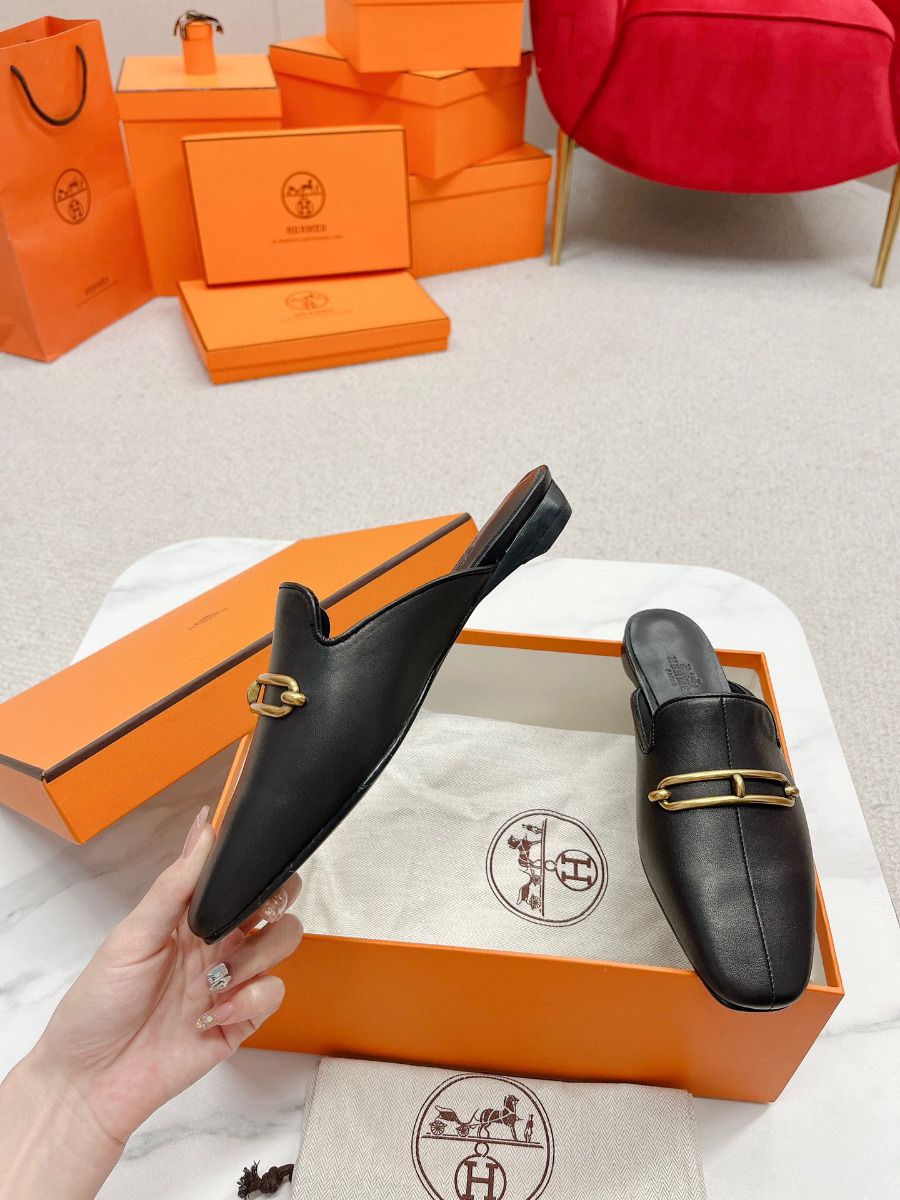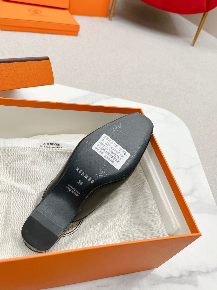 Hermes Esmee Mules in Black Calfskin