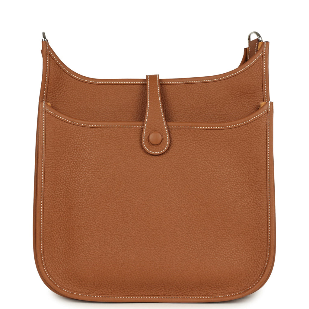 This Evelyne is in Gold clemence leather with palladium hardware and has contrast stitching, pull tab top closure and a removable Gold and White wool shoulder/crossbody strap.The interior is lined in Natural Suede leather.Collection: K (2025)Origin: FranceCondition: New and never worn (plastic on hardware)Accompanied by: Hermes box, Hermes dustbag, shoulder strap, shoulder strap dustbag, carebook and ribbonMeasurements: 11.5″ x 12″ x 3″ ; 18.5″ strap drop