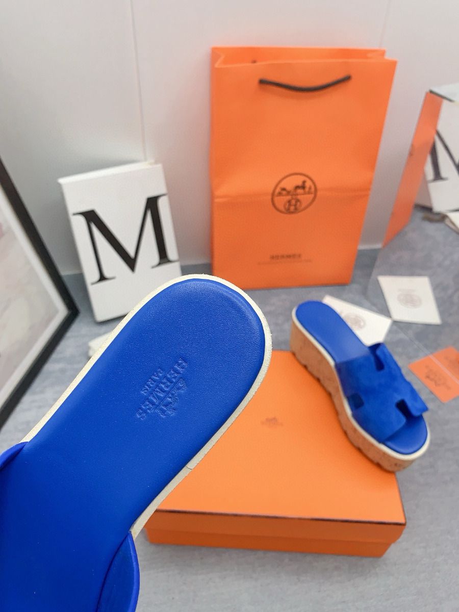 Where in Guangzhou, China can I buy a 1:1 replica Hermes Eze 30 Cork Platform Sandals in Blue Suede Leather