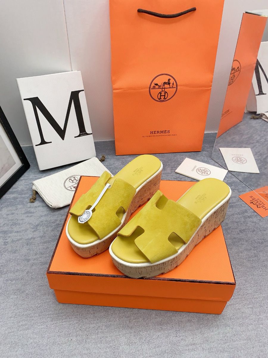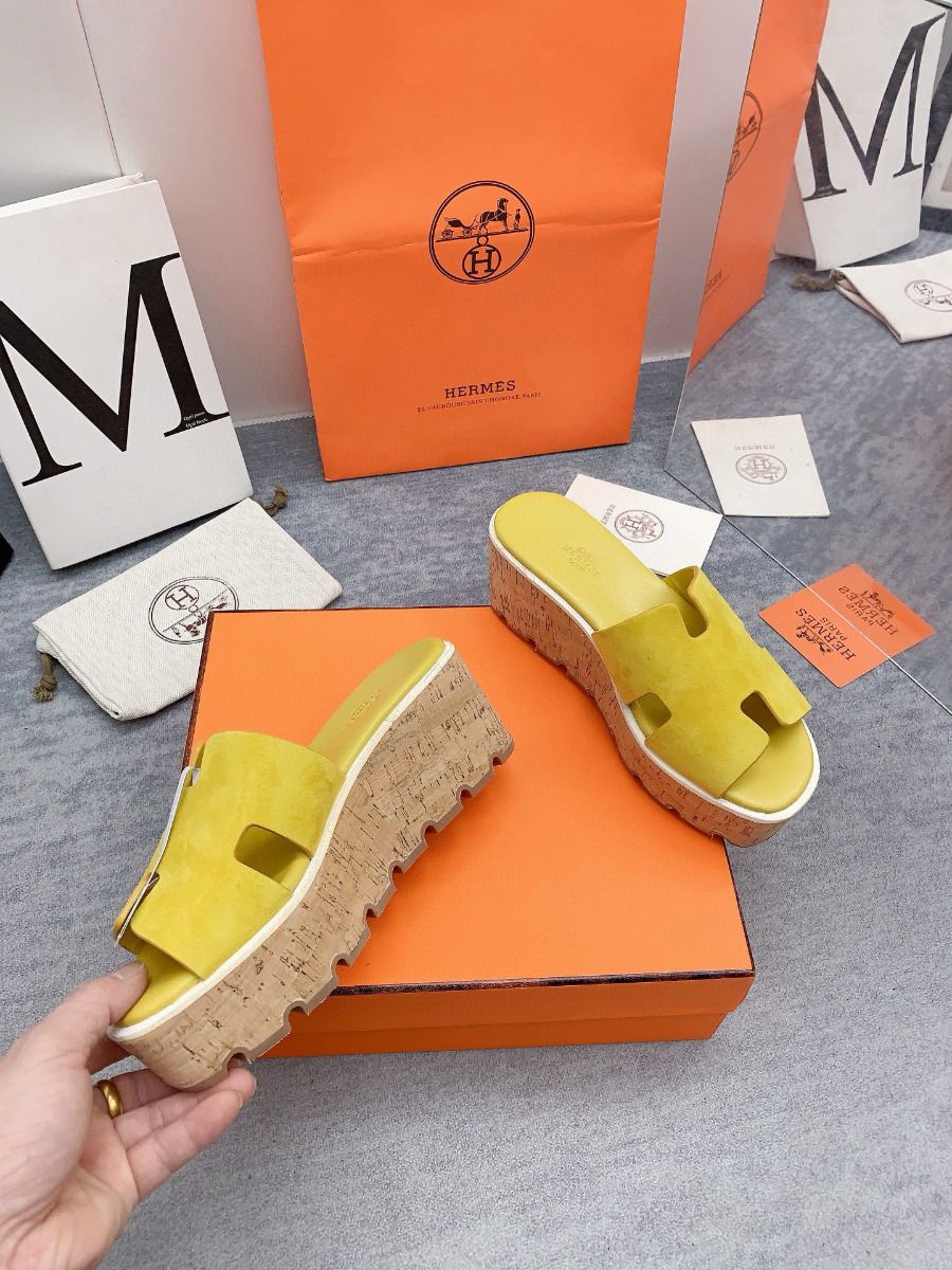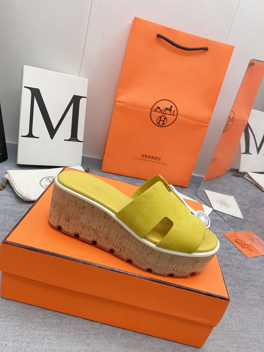 Where in Guangzhou, China can I buy a 1:1 replica Hermes Eze 30 Cork Platform Sandals in Yellow Suede Leather
