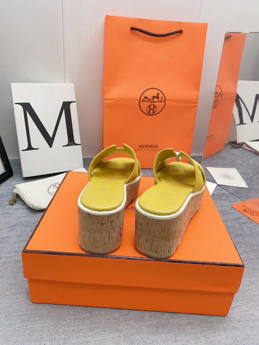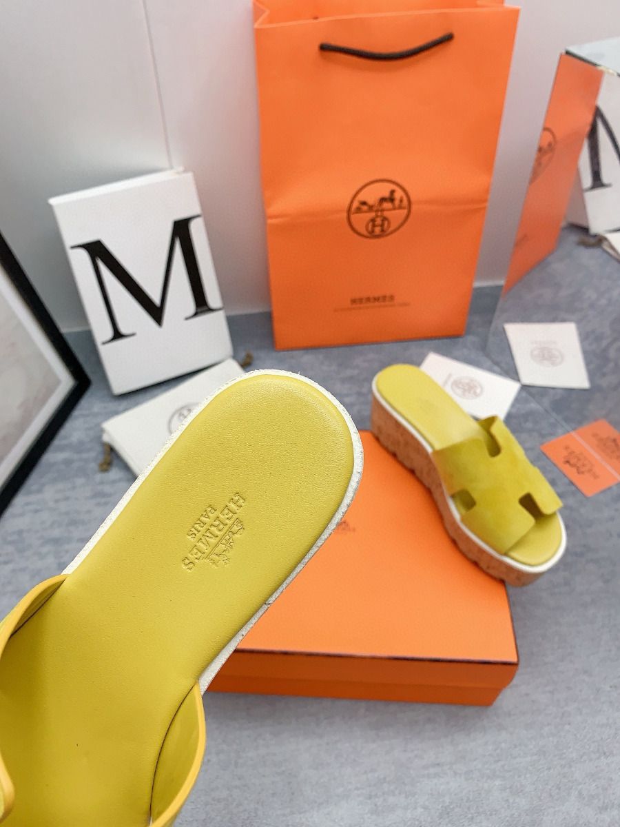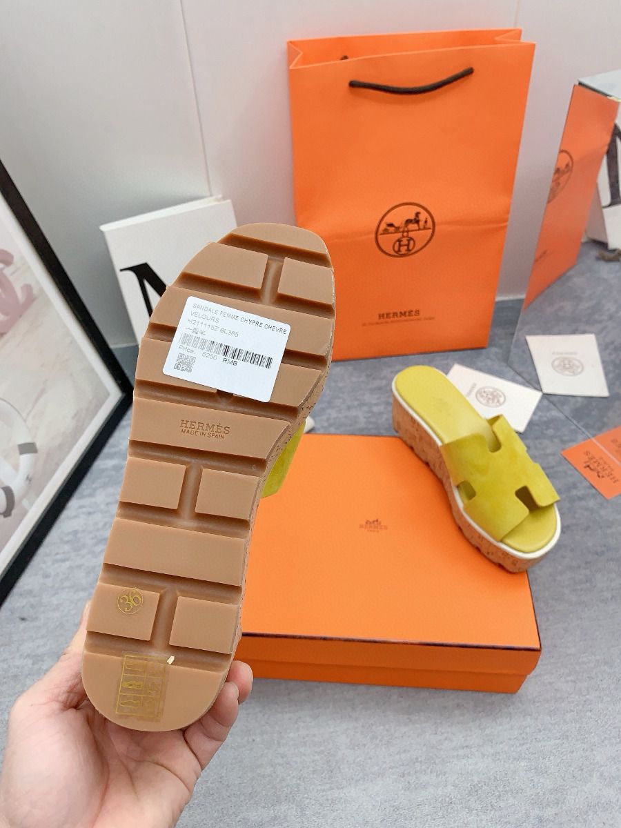 Where in Guangzhou, China can I buy a 1:1 replica Hermes Eze 30 Cork Platform Sandals in Yellow Suede Leather